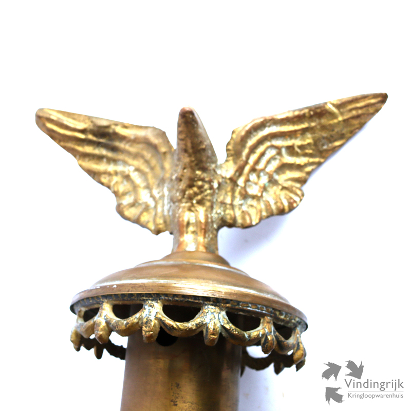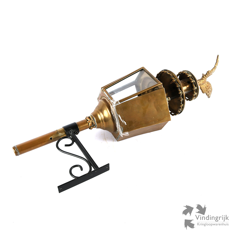 Bovenop is een adelaar te zien. De lantaarn kan met de houder aan de wand bevestigd worden.
