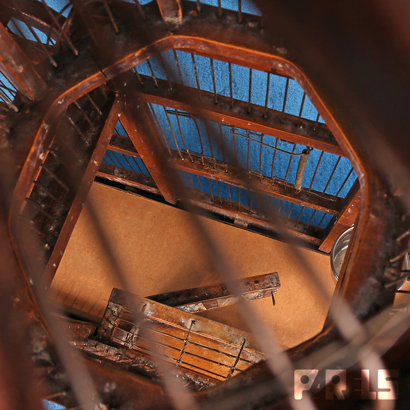 De grote houten kooi heeft een prachtig ontwerp.