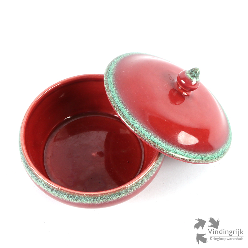 Bakje met deksel van de firma Koninklijke Plateelbakkerij Zuid-Holland uit Gouda.