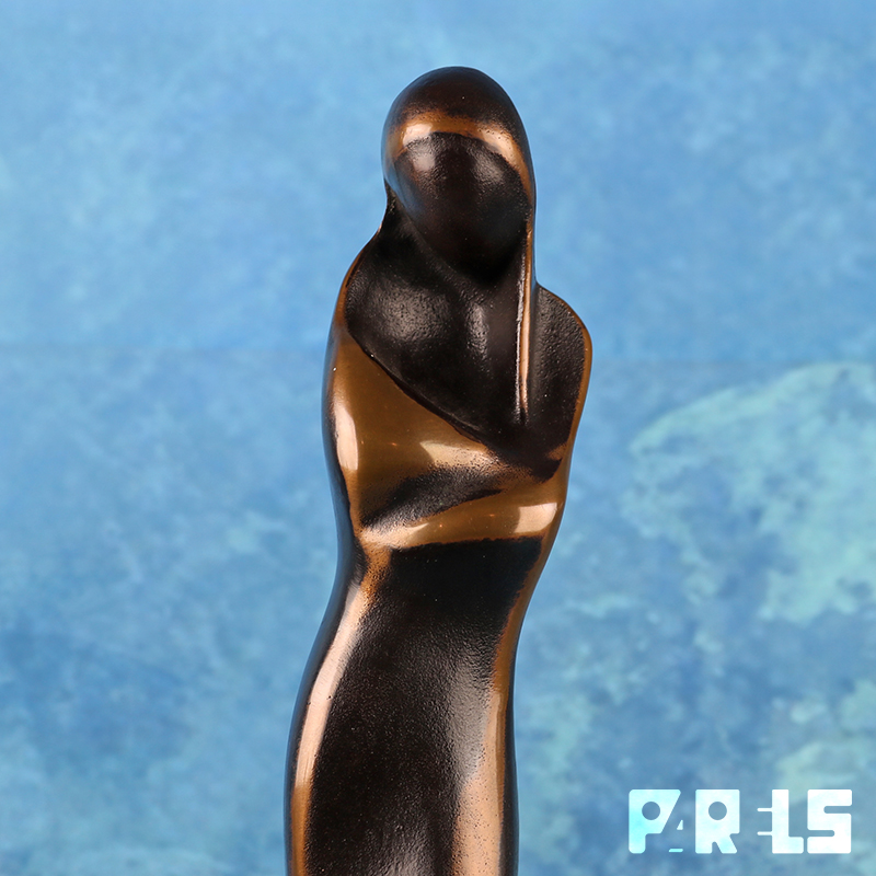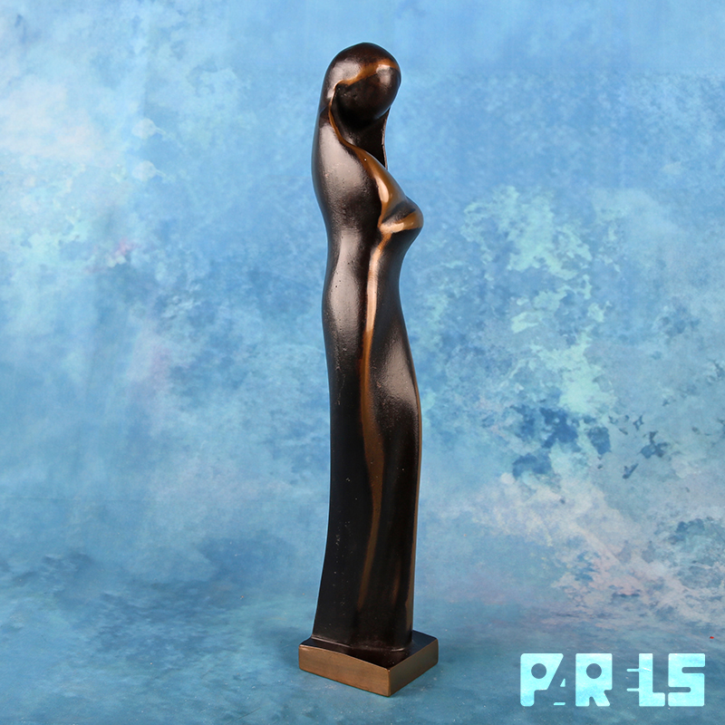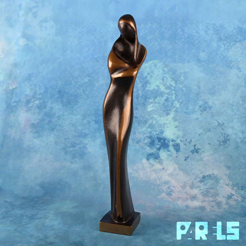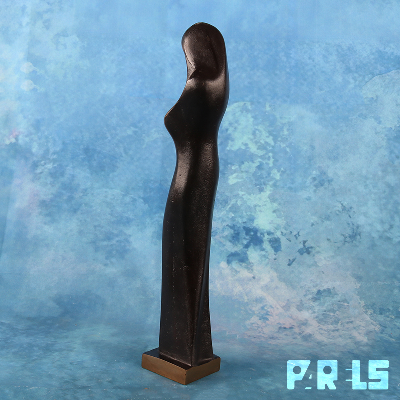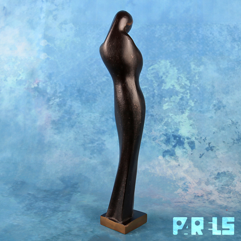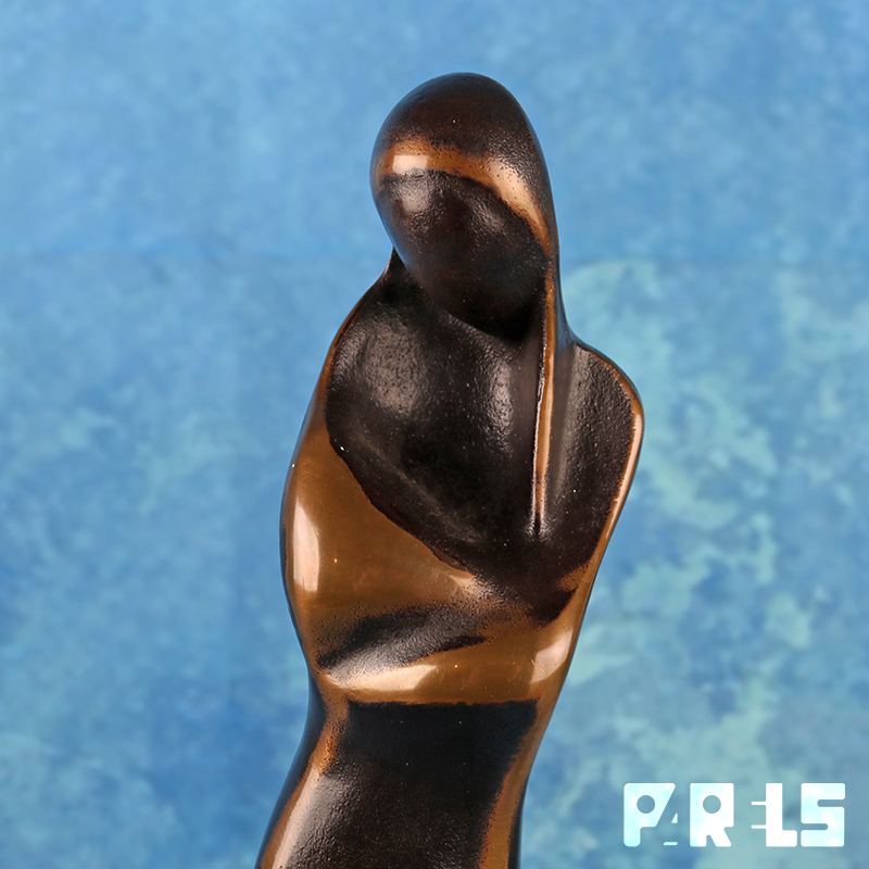Dit bronzen beeld getiteld “Maternité” van René Daemen is een gestileerde weergave van moederliefde. Het originele beeld is gemaakt in 1935 en was van aardewerk. Dit exemplaar is gegoten in de jaren ’70. Het massieve kunstwerk is circa 35 cm hoog en weegt ongeveer 4,2 kg. De fraaie gestileerde compositie en art deco-invloed geven het een karakteristieke uitstraling. Het brons heeft een originele patina en lichte ouderdomssporen, passend bij de leeftijd. Een bijzonder object voor wie op zoek is naar een authentiek kunstwerk met geschiedenis.