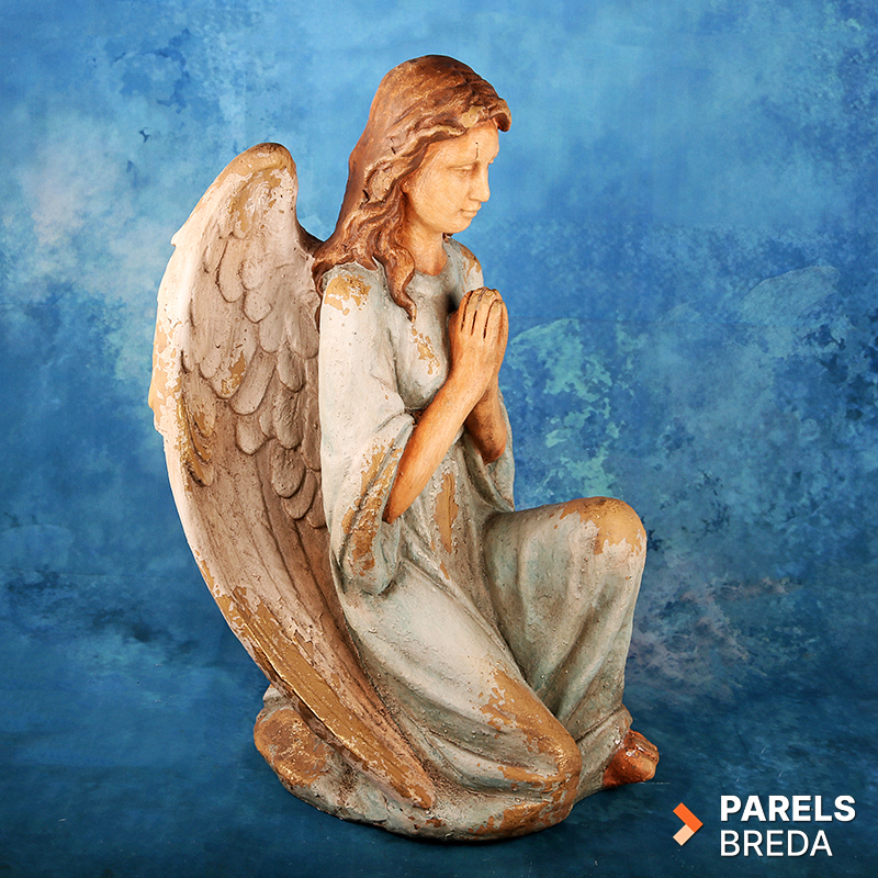 Beeld van Clayre & Eef van een knielende engel in biddende houding. Het beeld is vervaardigd uit polyresin/kunststeen en heeft een formaat van 34×36×55cm. De vormgeving is zorgvuldig uitgewerkt met aandacht voor details in de vleugels en het oppervlak. De afwerking en rustige uitstraling maken het geschikt voor diverse interieurstijlen.