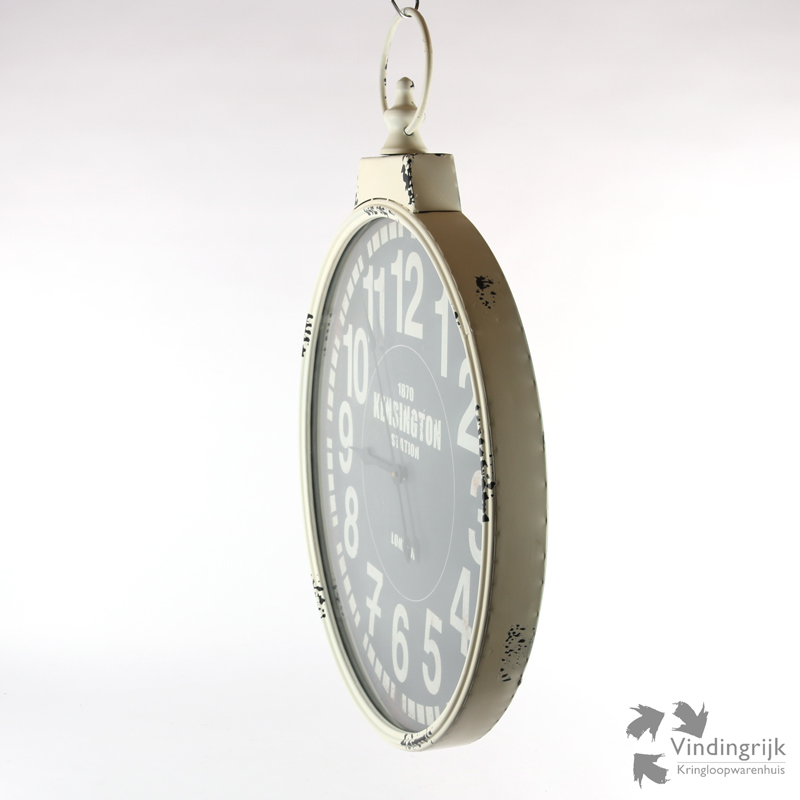 Mooie grote wandklok in de stijl van een stationsklok uit Engeland, Kensington Station Londen.