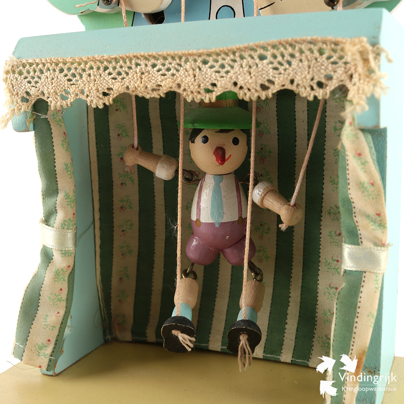 Het betreft hier een leuke voorstelling van de welbekende houten jongen genaamd Pinokkio.