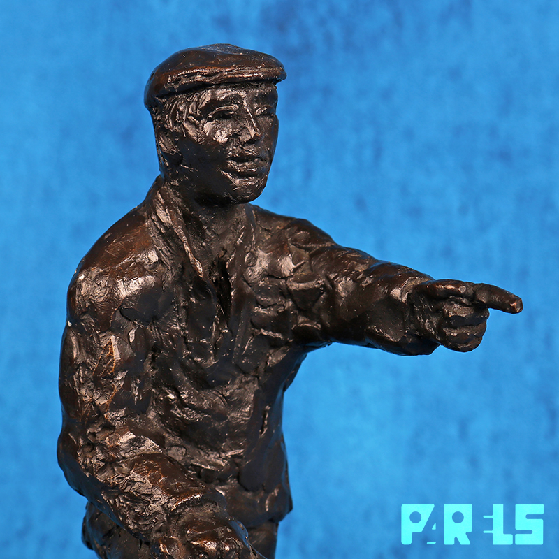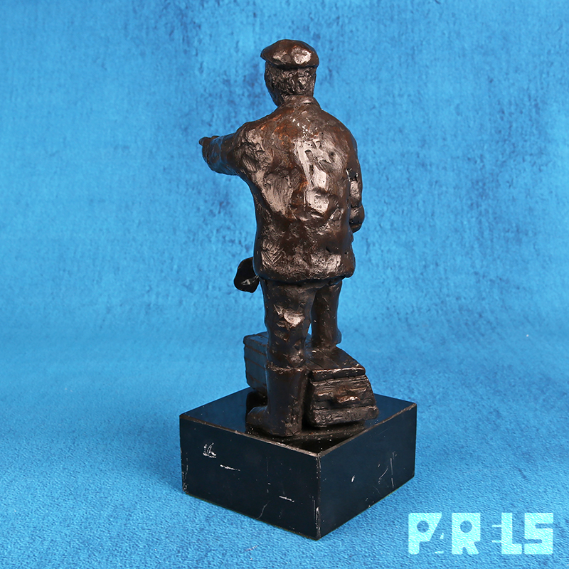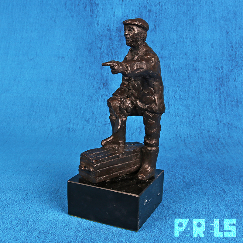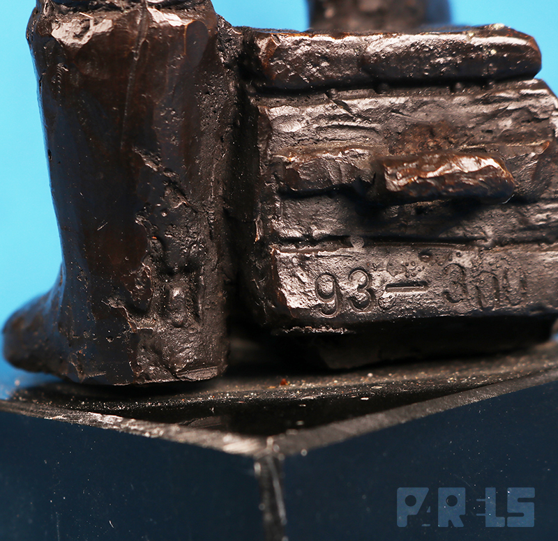 Het beeld is aan de achterzijde gesigneerd met de letters JH van Jaap Hartman, genummerd exemplaar 93 van 300, en vervaardigd voor Myron BV te Woudrichem.