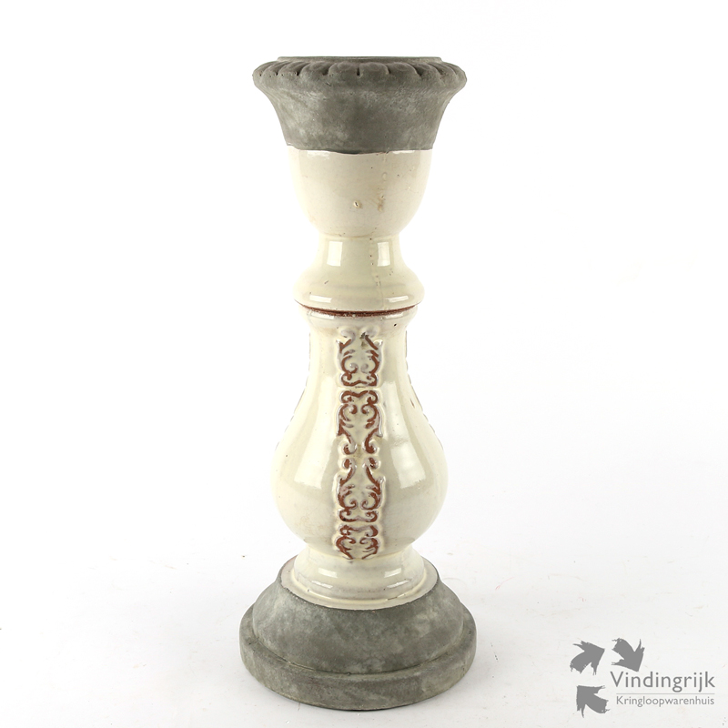 Prachtige hoge kandelaar van het luxe woonmerk PTMD. De kandelaar is gemaakt van aardewerk, afgewerkt met glazuur en een gedeelte betonlook.