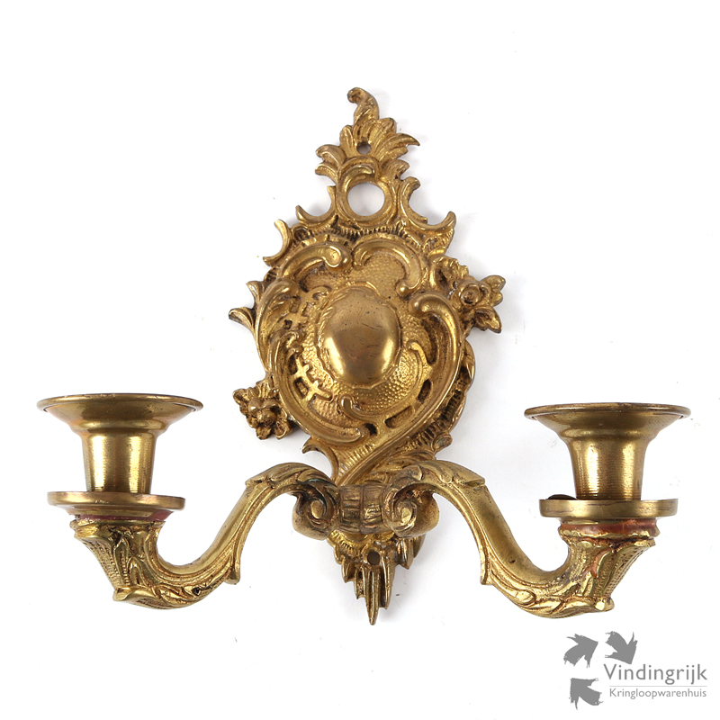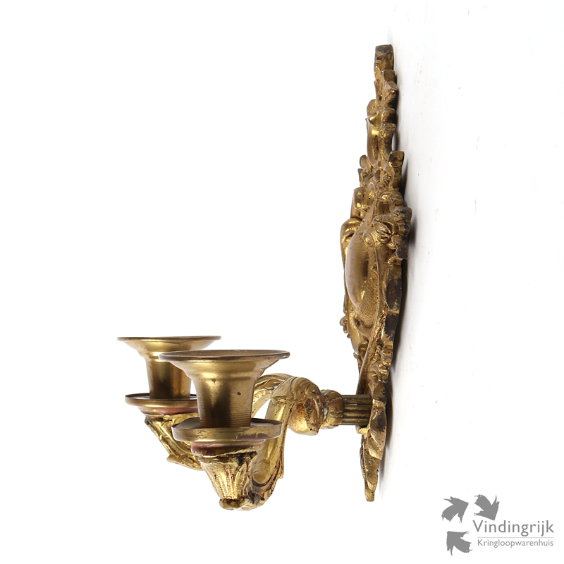 Klassieke wandkandelaar gemaakt van metaal in een goudkleurige kleur.