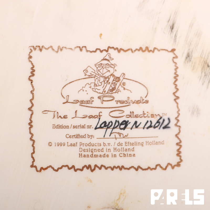 De onderzijde van de laaf is gemerkt met een serienummer en hij is voorzien van een officiële Efteling munt.