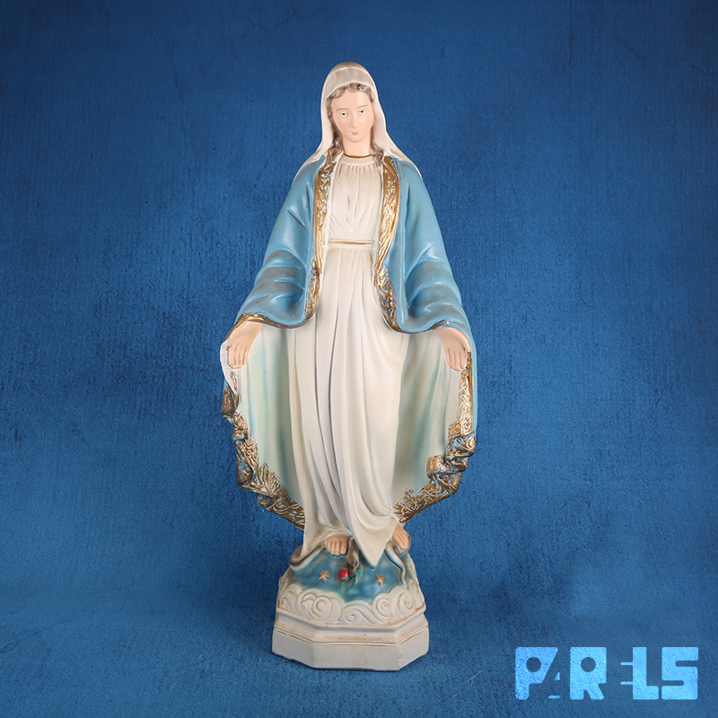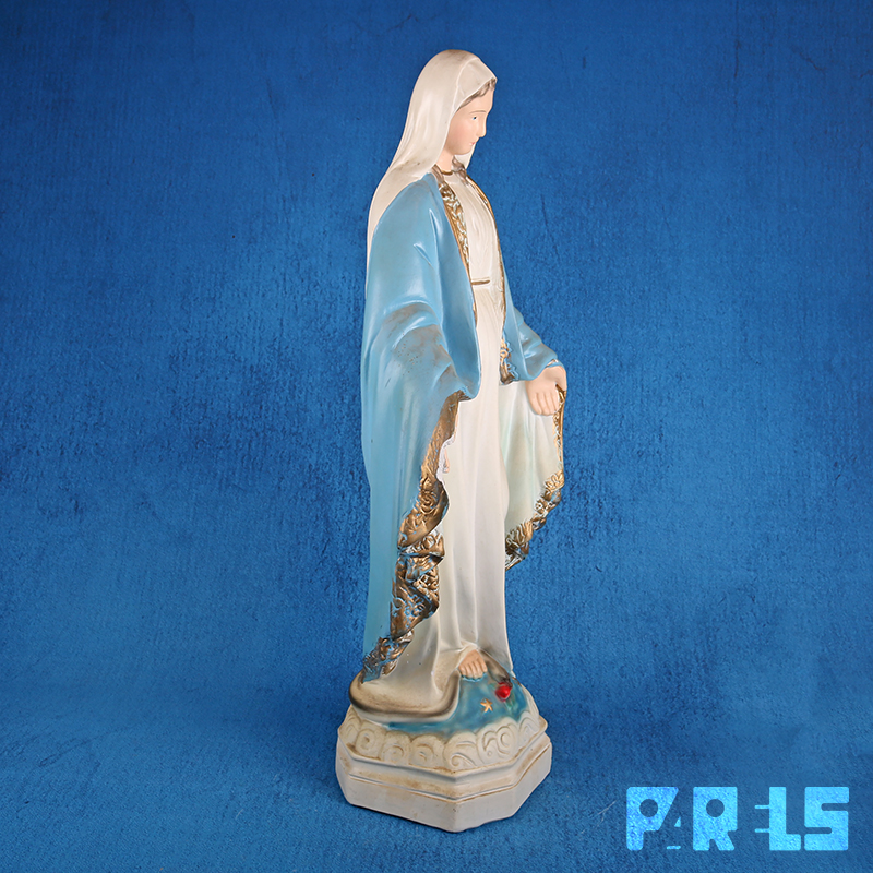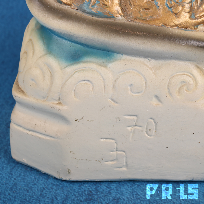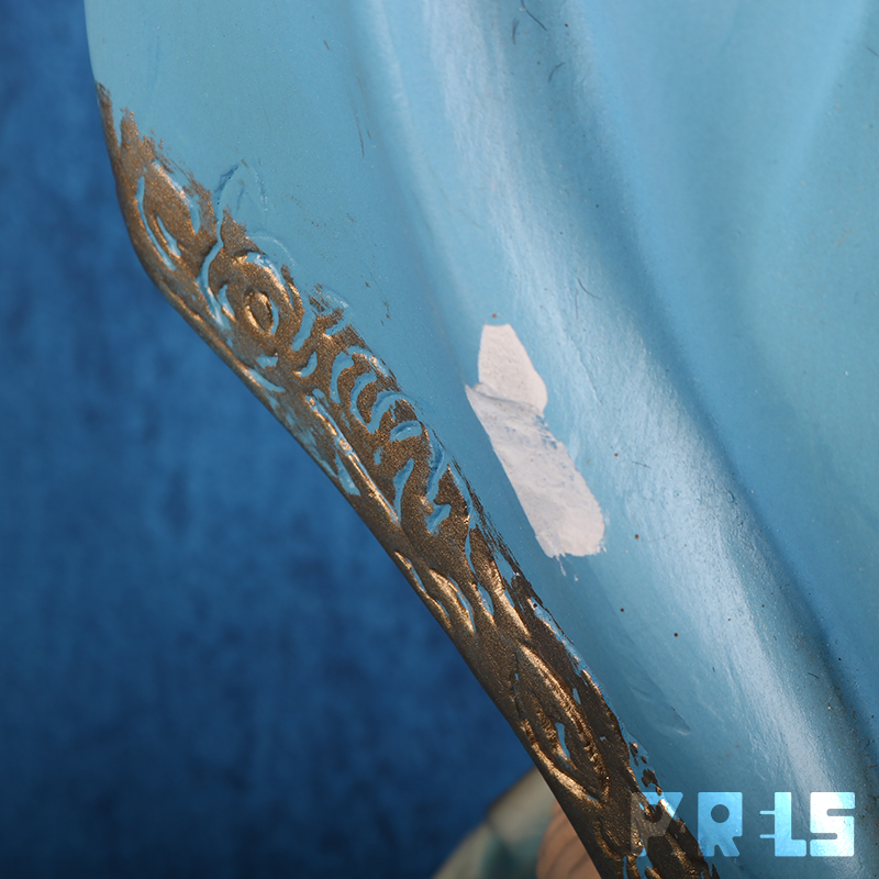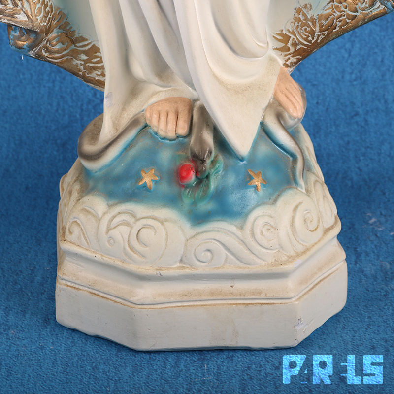 Het beeld is gemaakt van gips en met de hand beschilderd.