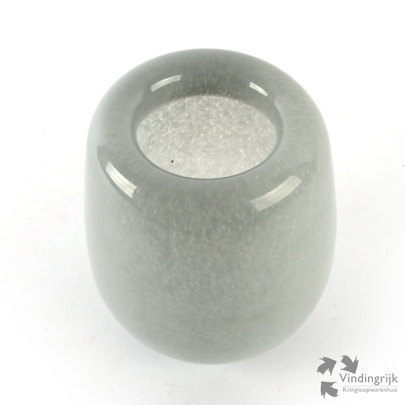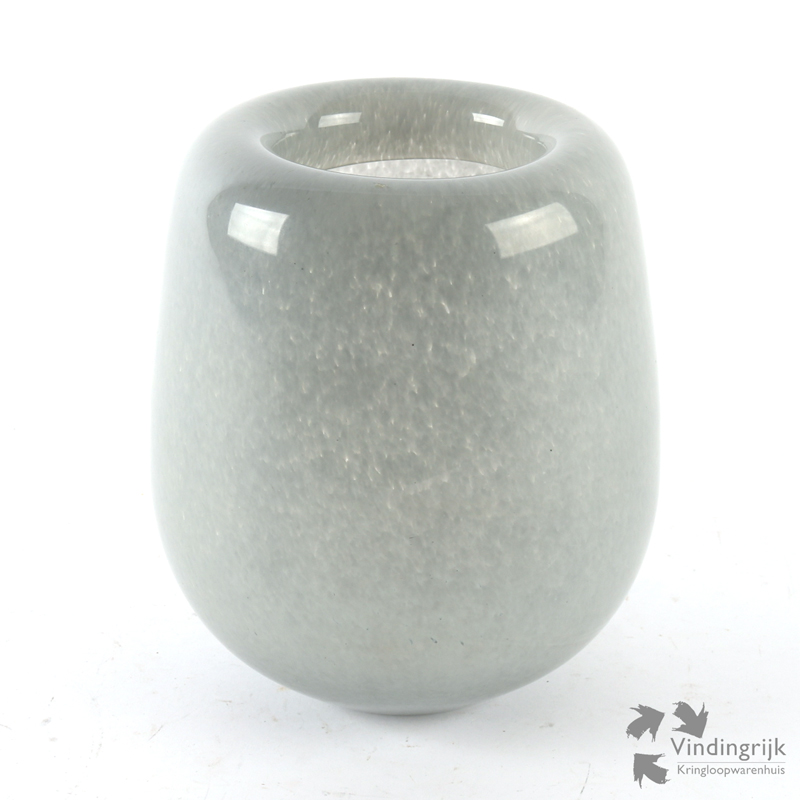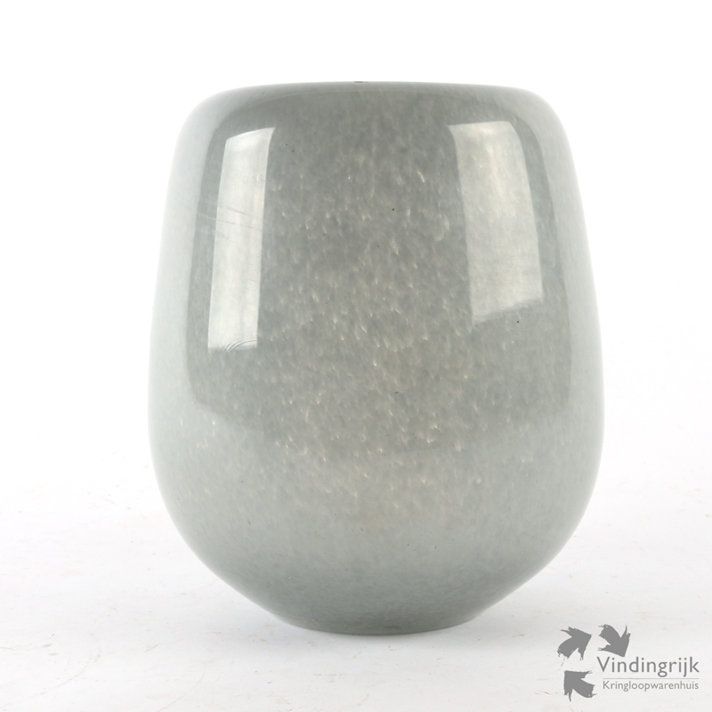 De vaas is mondgeblazen in dik glas en heeft een afgeronde rand.