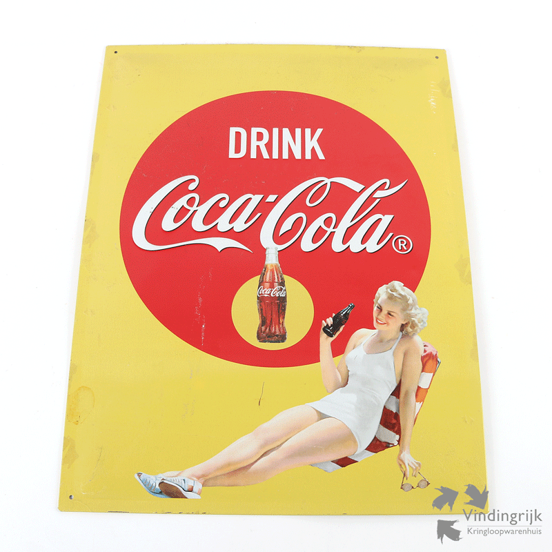 Het bord is van blik en heeft 4 gaten om hem op te hangen.