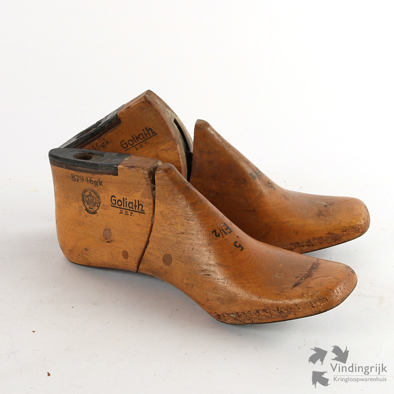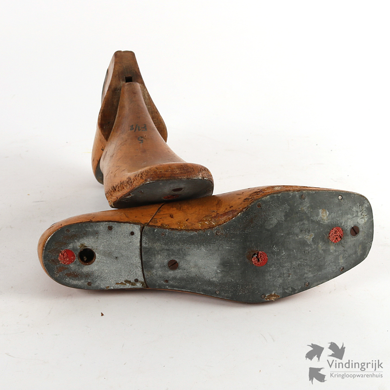 Set van 2 antieke schoenleesten, gemaakt van hout met een metalen zool.
