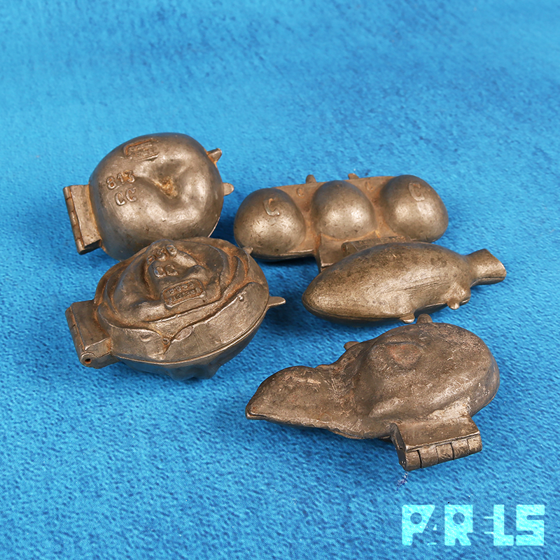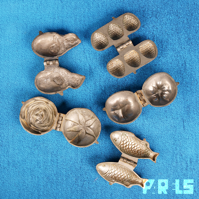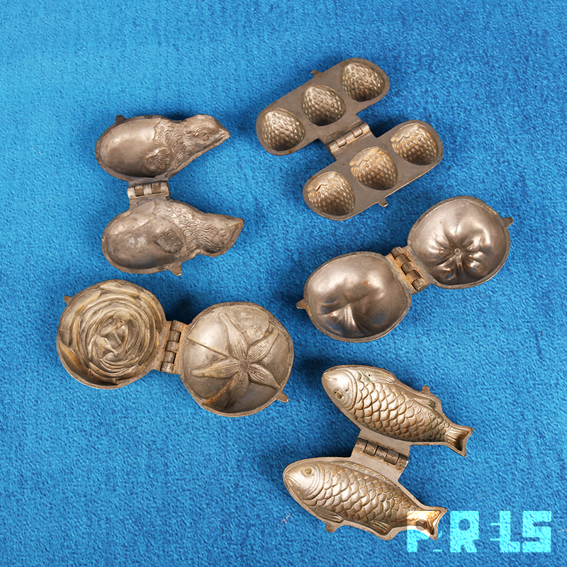 Het zijn handgemaakte dubbele vormen van gegoten tin, met diverse afbeeldingen. De 2 helften kunnen openklappen als een boek en zijn aan elkaar vast gemaakt met een scharnier.