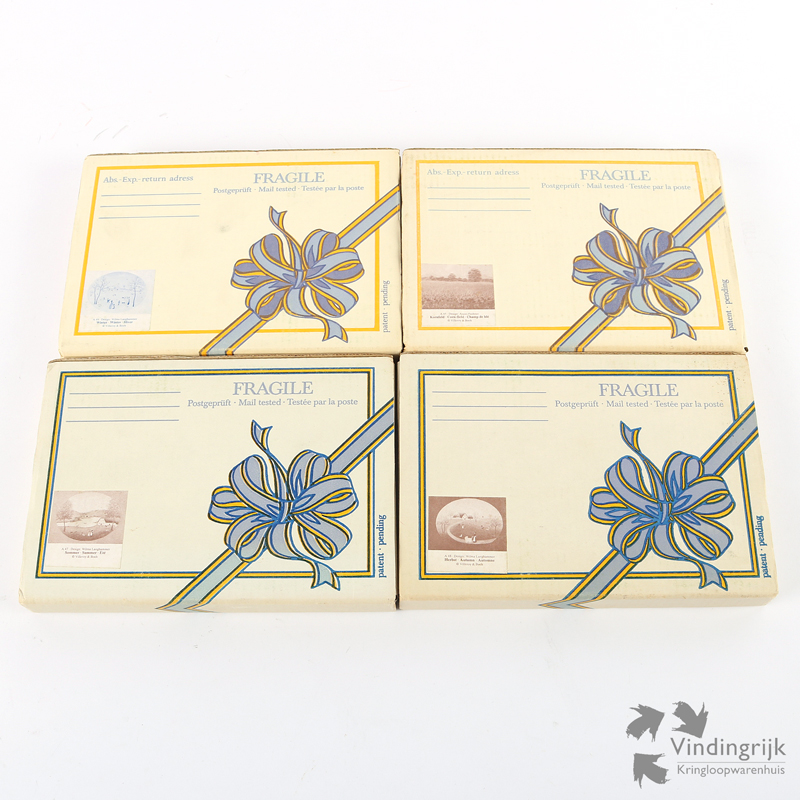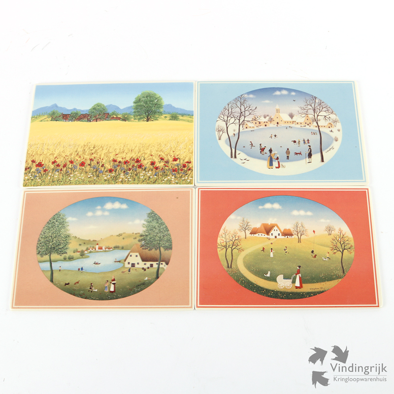 Set van vier porseleinen briefkaarten Villeroy & Boch, de zogenaamde VilboCard. Het gaat hier om de kaarten korenveld (A45), winter (A49), zomer (A47) en herfst (A48).