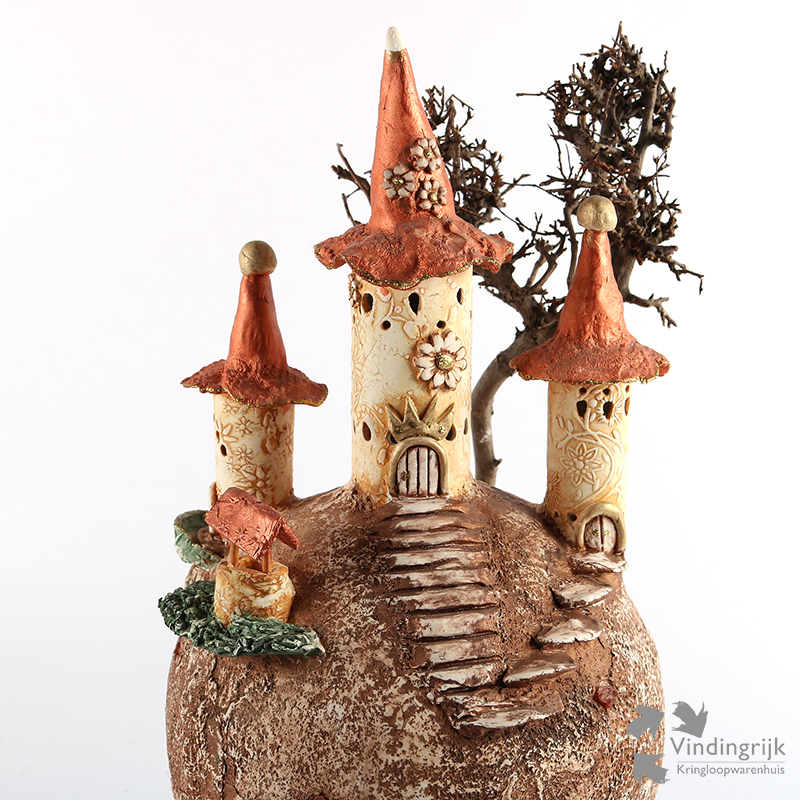 Dit artikel lijkt zo weggezweefd te zijn uit de Droomvlucht van de Efteling. Toch is het een kunstwerkje met als basis een bol, waarop kasteeltorentjes en een echt houten boompje zijn gesitueerd. Door de aangebrachte verlichting binnenin krijgt het geheel nog meer een sprookjesachtige sfeer.