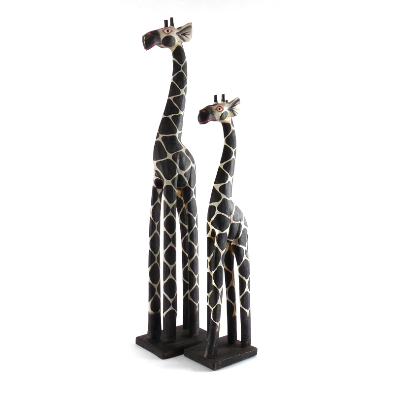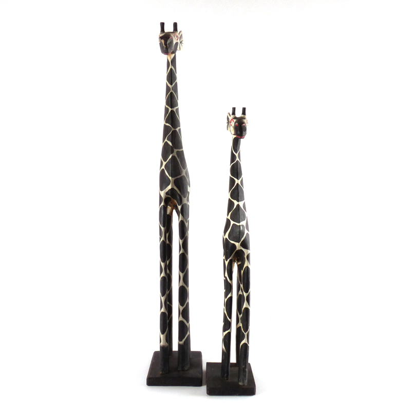 Twee leuke giraffen van lichtgewicht hout met de hand beschilderd. Ze zijn op zoek naar een mooi plekje of hoekje om deze op te sieren.