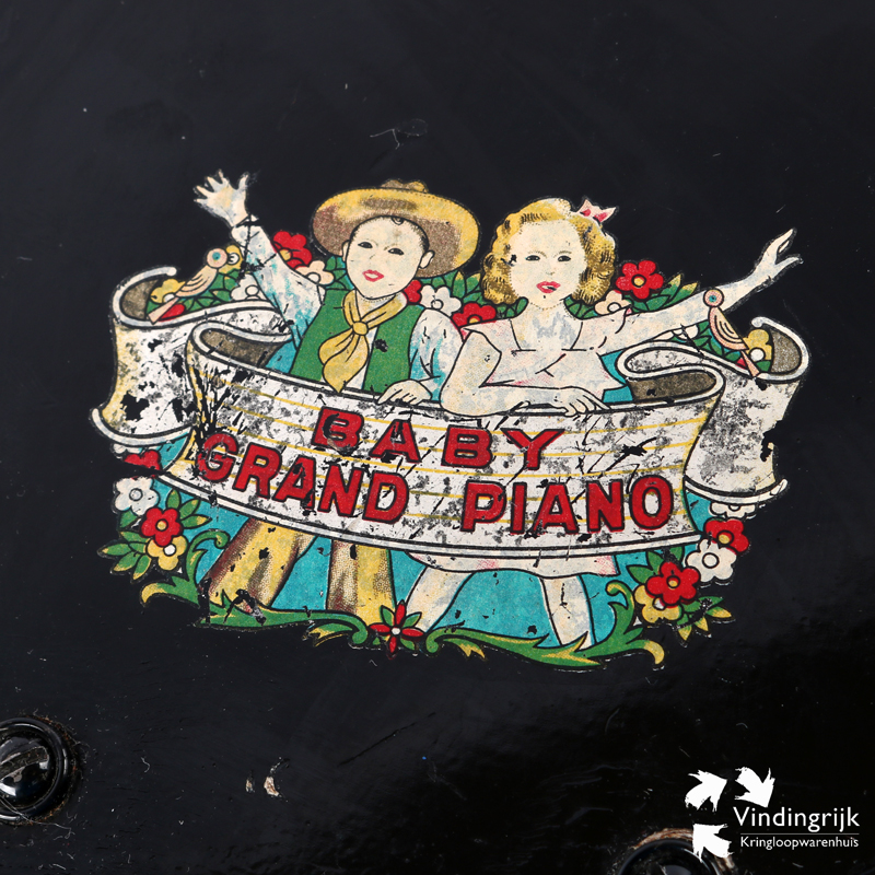 Het betreft een oude miniatuur/speelgoedversie van een vleugelpiano.