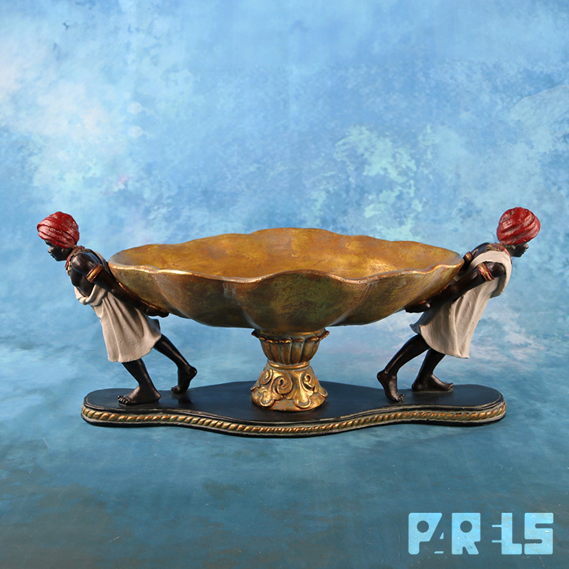 De schaal behoort tot de blackamoor-stijl, een decoratieve kunstvorm die vooral in Italië en Frankrijk populair was in de 17e tot 20e eeuw. Blackamoor-objecten tonen meestal stereotypische exotisch gestileerde Afrikaanse of Moorse figuren die schalen, lampen of meubels dragen en werden in hun tijd gezien als luxe interieurdecoratie.