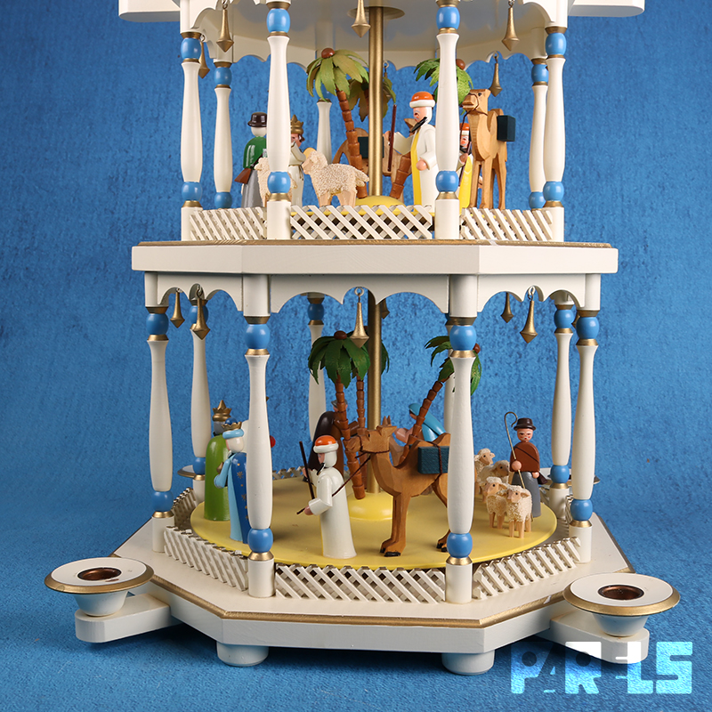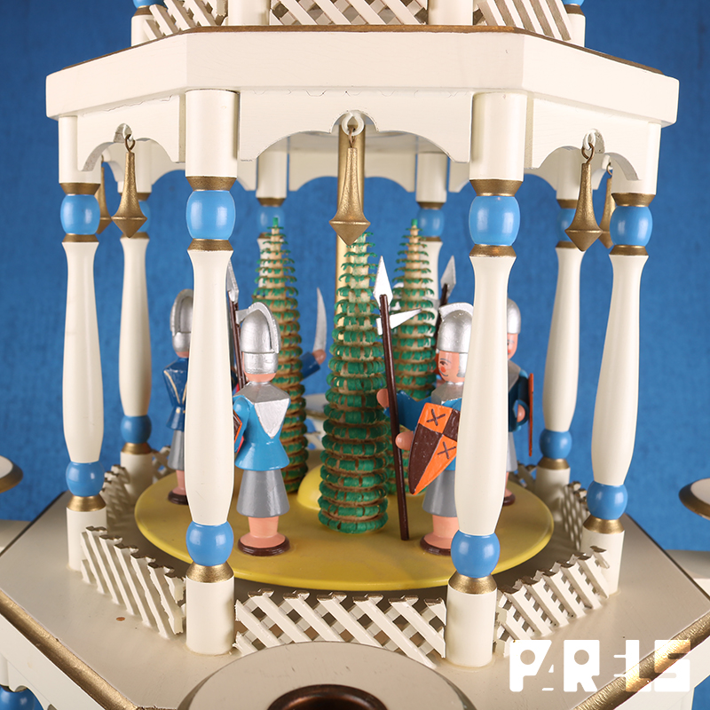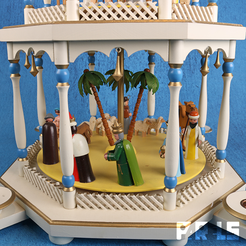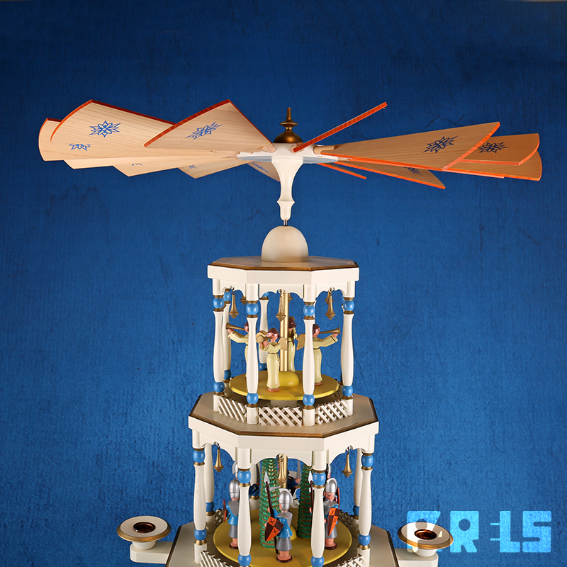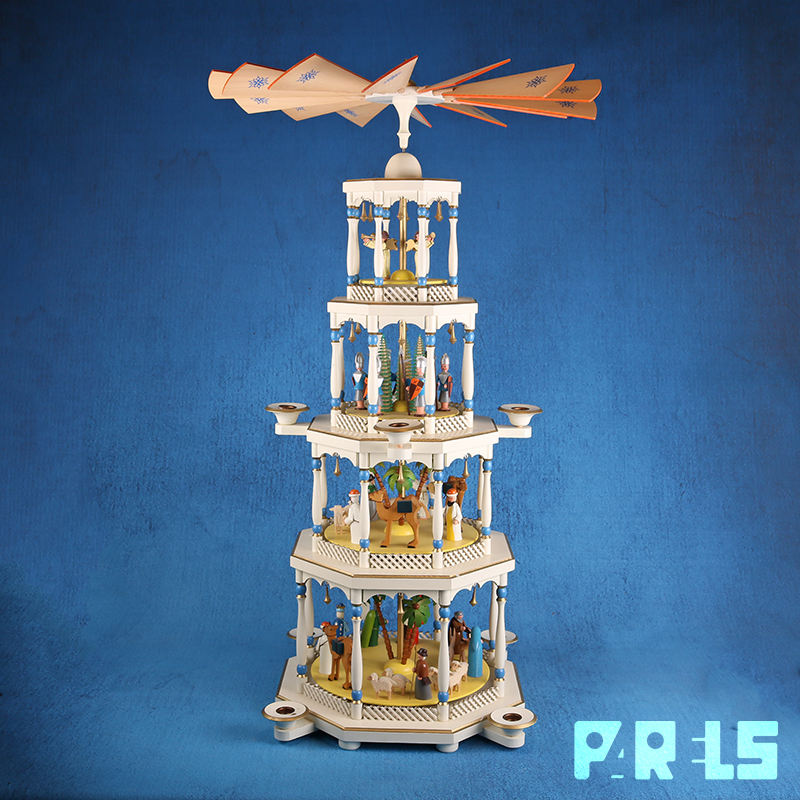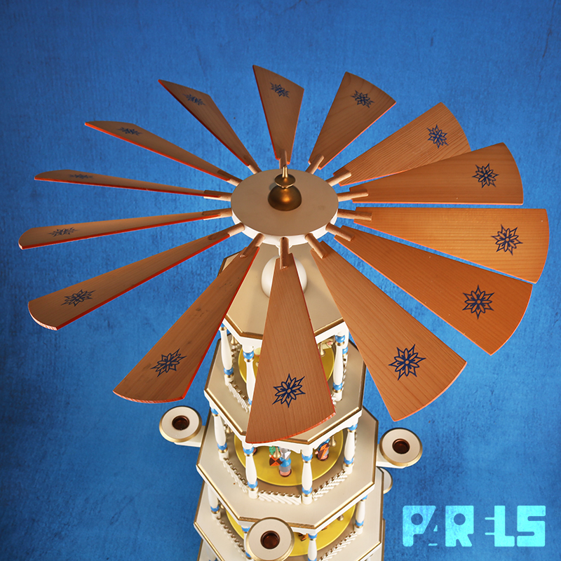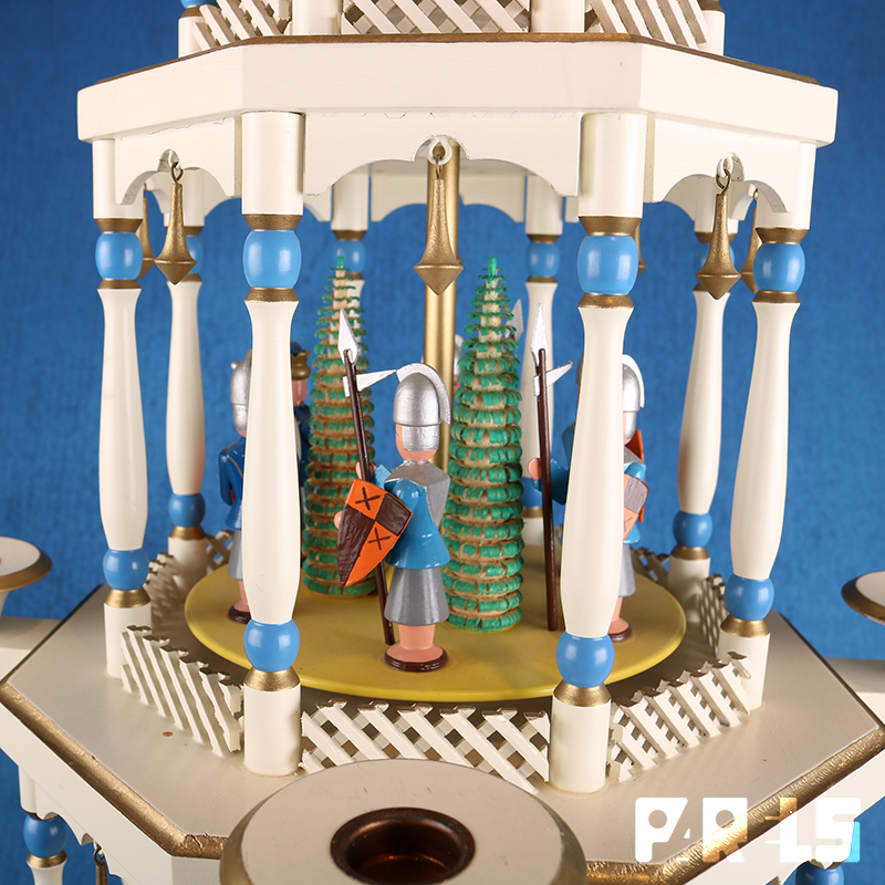 De piramide gaat draaien door de warmte van de kaarsen die je erop kan plaatsen.