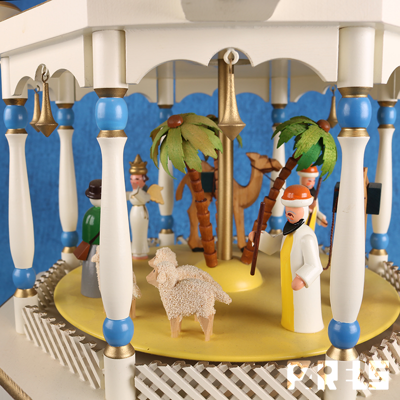 Prachtige grote antieke houten kerstpiramide in zeer goede staat.