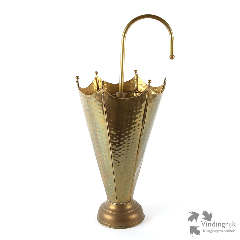 Mooie vintage paraplubak gemaakt van koper in de vorm van een paraplu. Aan de binnenzijde bevinden zich uitsparingen om je paraplu makkelijk op te kunnen bergen. Leuk om in een hal te plaatsen of als decoratie.