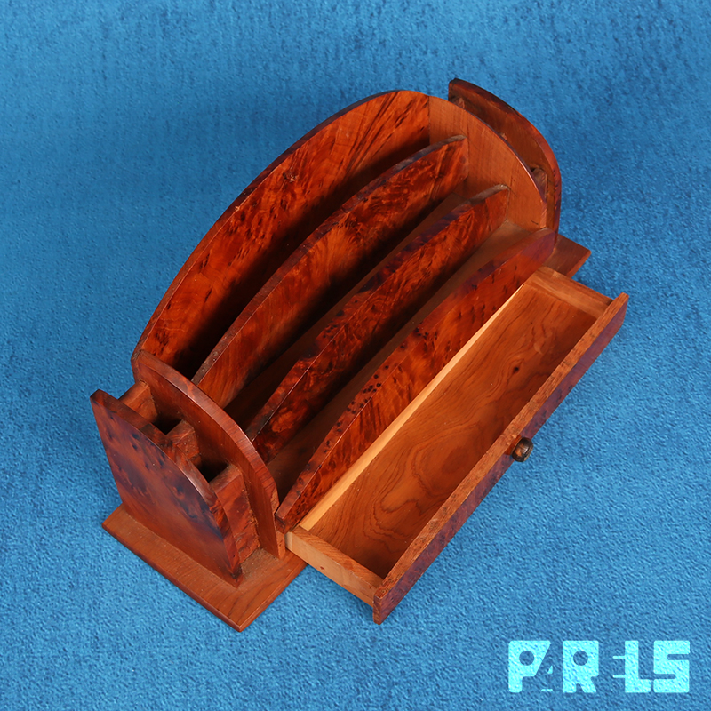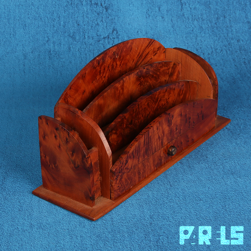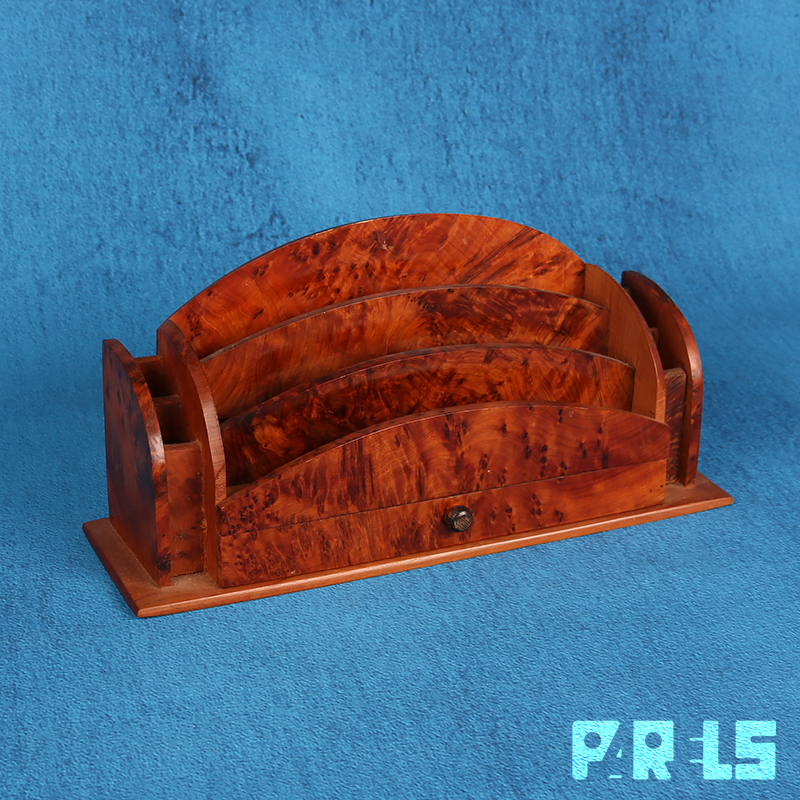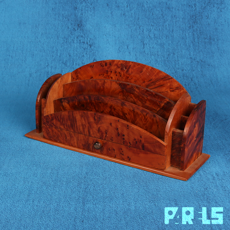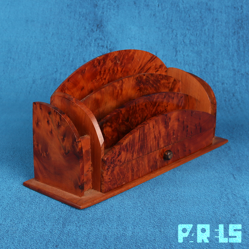Stijlvolle vintage brievenhouder van prachtig notenhout.