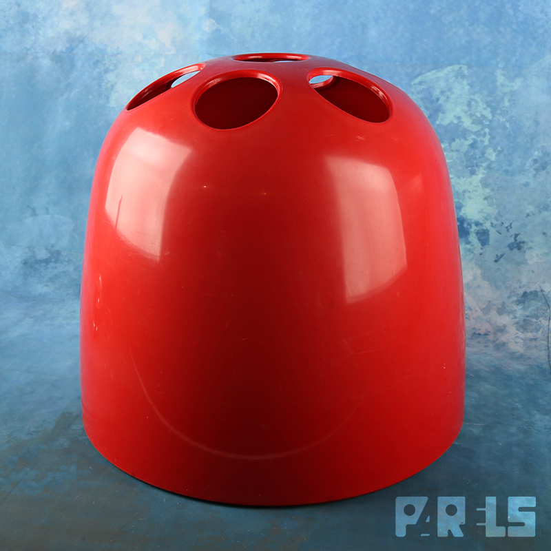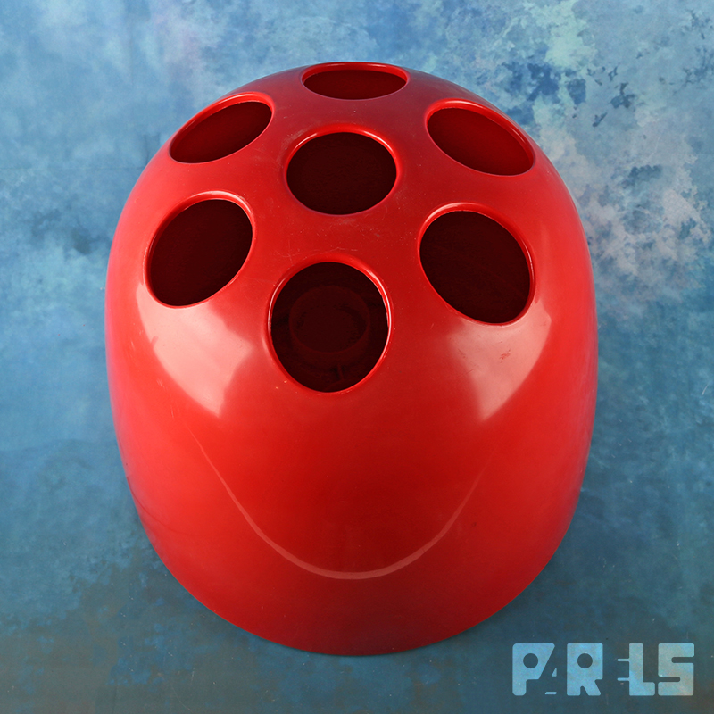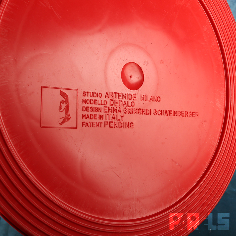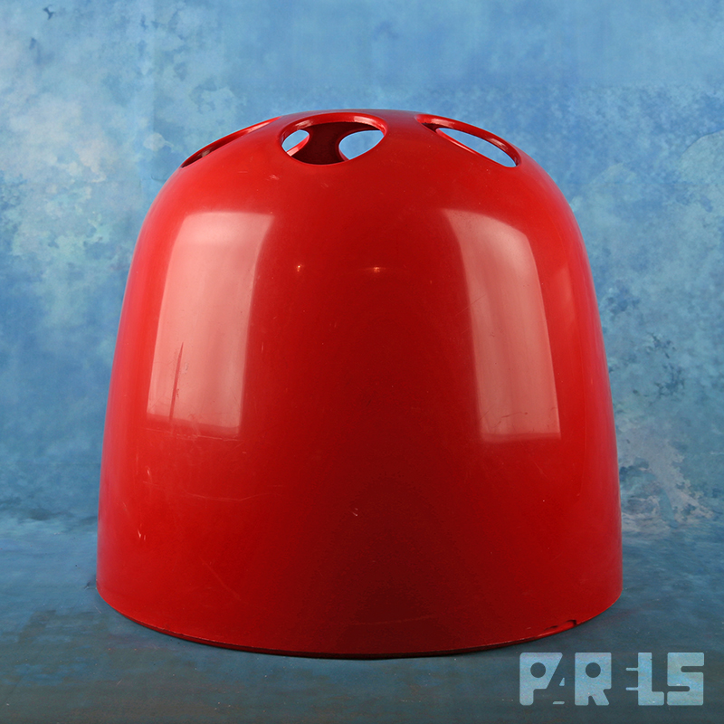 Leuke vintage paraplubak in de kleur rood. Het betreft type ‘Dedalo’, ontworpen in 1966 door Emma Gismondi Schweinberger voor het wereldwijd bekende Italiaanse bedrijf Artemide. Uitgevoerd in de typische Space Age stijl van de jaren ’60.