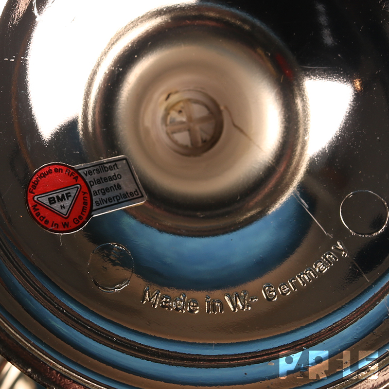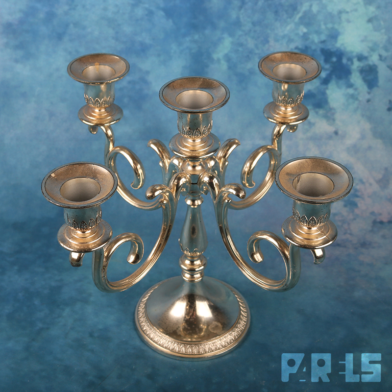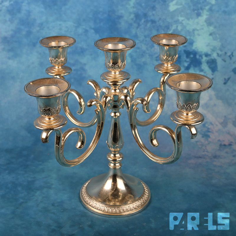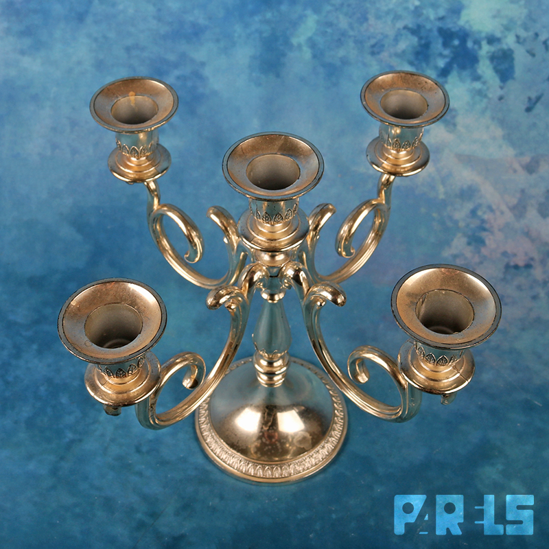 Vintage vijfarmige verzilverde kandelaar van BMF (Bayerische Metallwarenfabrik), een Duits bedrijf dat actief was tussen 1902 en 1998. Deze stijl met sierlijke, gedraaide armen is typerend voor de vintage collectie van het merk uit de jaren ’60 of ’70. Gemaakt in het voormalige West-Duitsland. Onderop gemerkt.