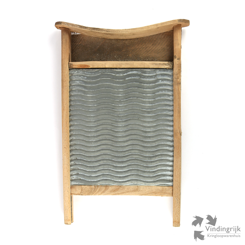 Het bord is gemaakt van hout met een zinken geribbeld wasgedeelte.