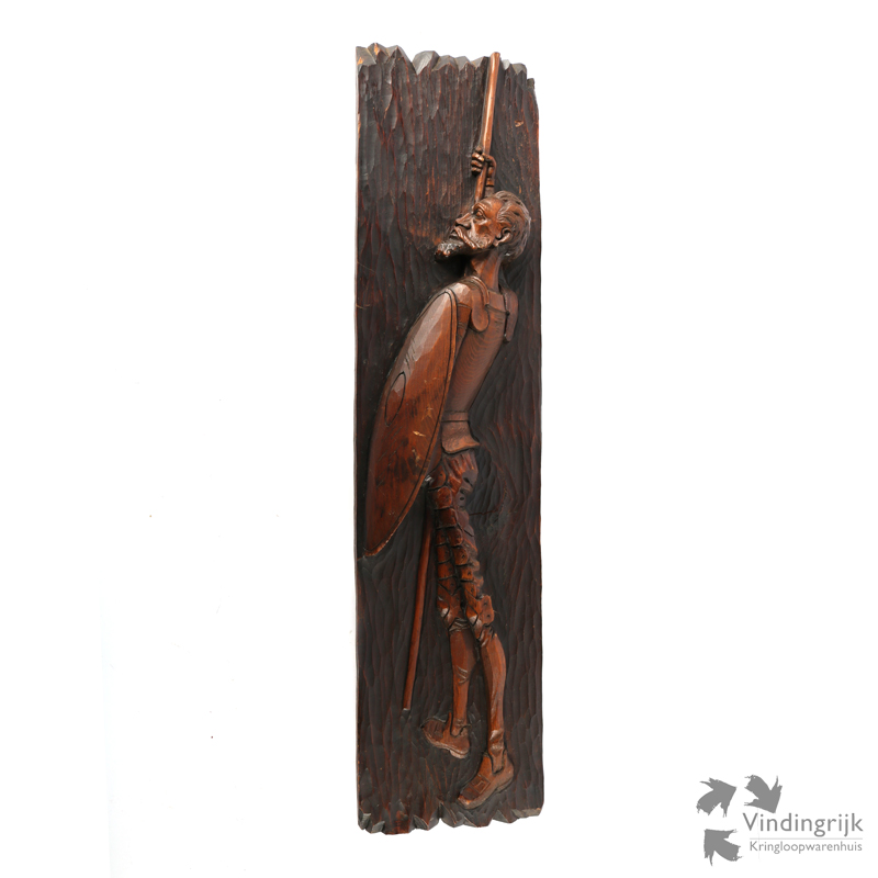 Houten wanddecoratie van Don Quichot , de dolende ridder uit La Mancha.