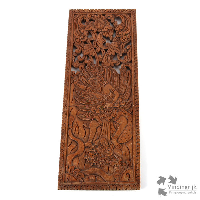 Wanddecoratie met houtsnijwerk uit één stuk hout.