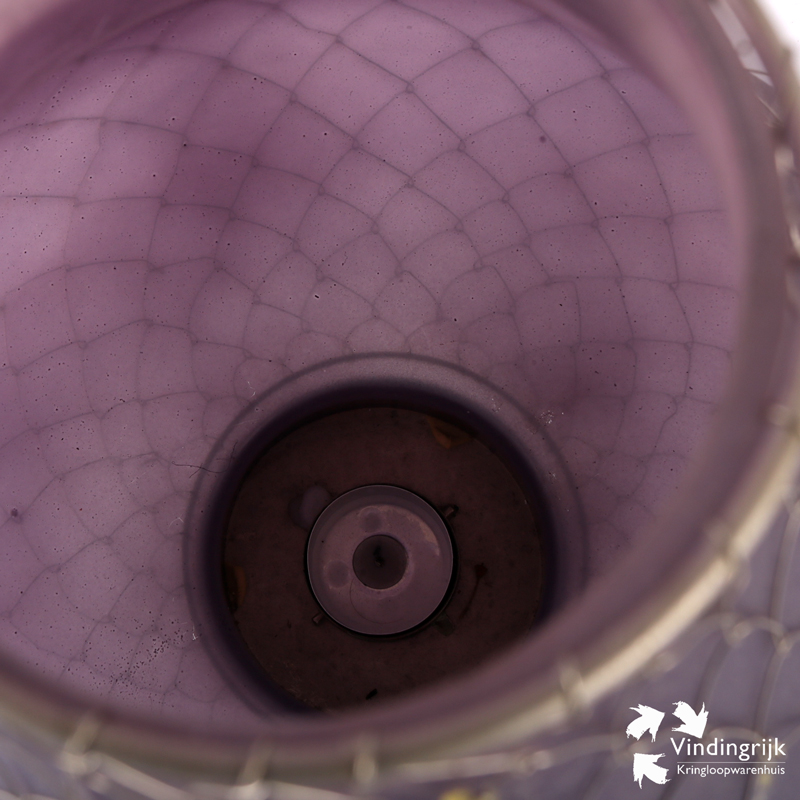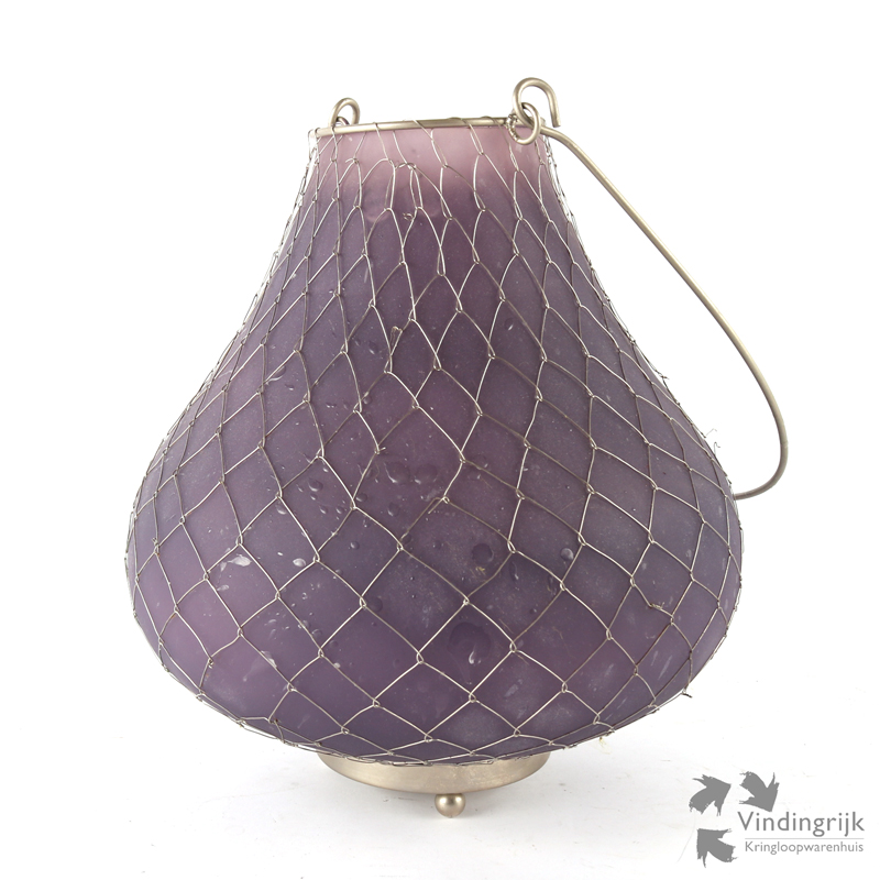 De basis va het windlicht is gemaakt van glas in de kleur paars.
