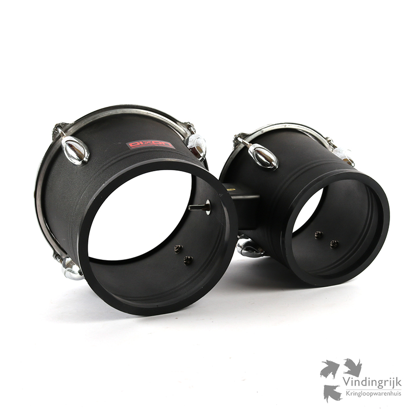 Leuke bongoset van het merk Dixon. De bongo’s zijn gemaakt van metaal en van goede kwaliteit. Met spanrand van metaal in zilverkleur.