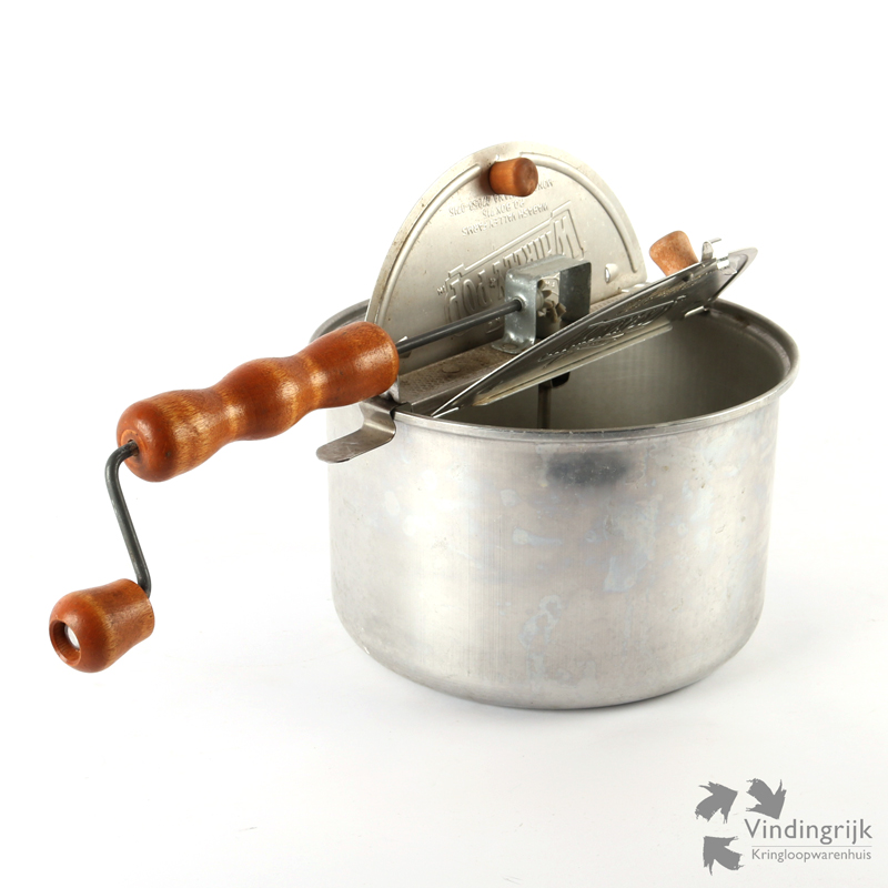 Originele popcornpan uit Amerika: The Genuine Whirley Pop van de Wabash Valley Farms uit Monon Indiana.