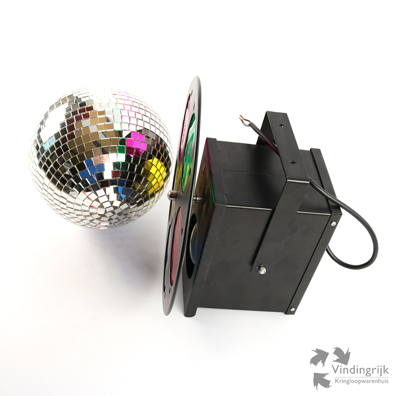 disco partyset discobol spiegelbol lamp draaiende kleurenschijf motor feest