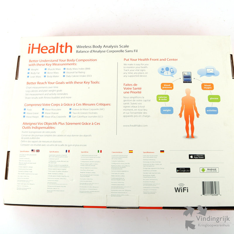 iHealth Wireless Body Analysis Scale, oftewel een draadloze weegschaal voor lichaamsanalyse van het type iHealth, nog nieuw en ongebruikt in de originele verpakking met gebruiksaanwijzing.