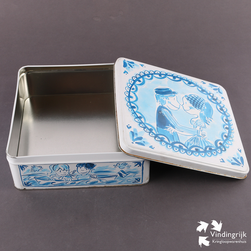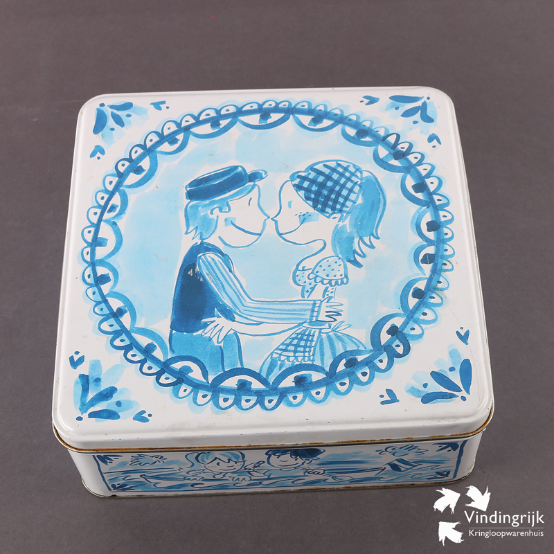 Leuke koektrommel van het bekende merk Blond Amsterdam, uitgevoerd in Delftsblauwe stijl.