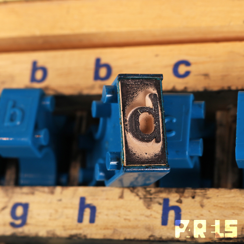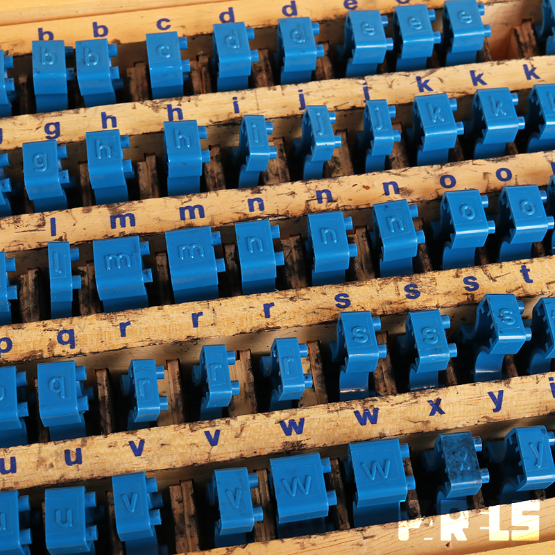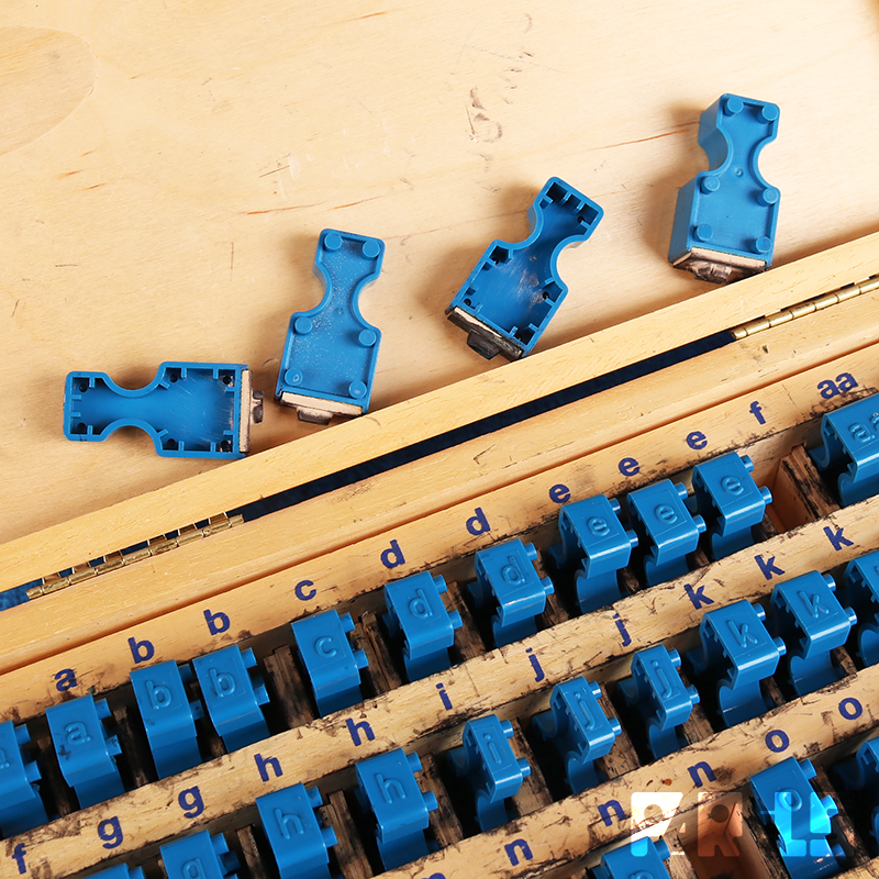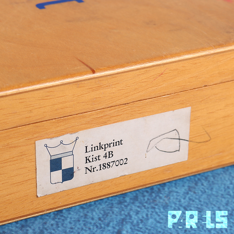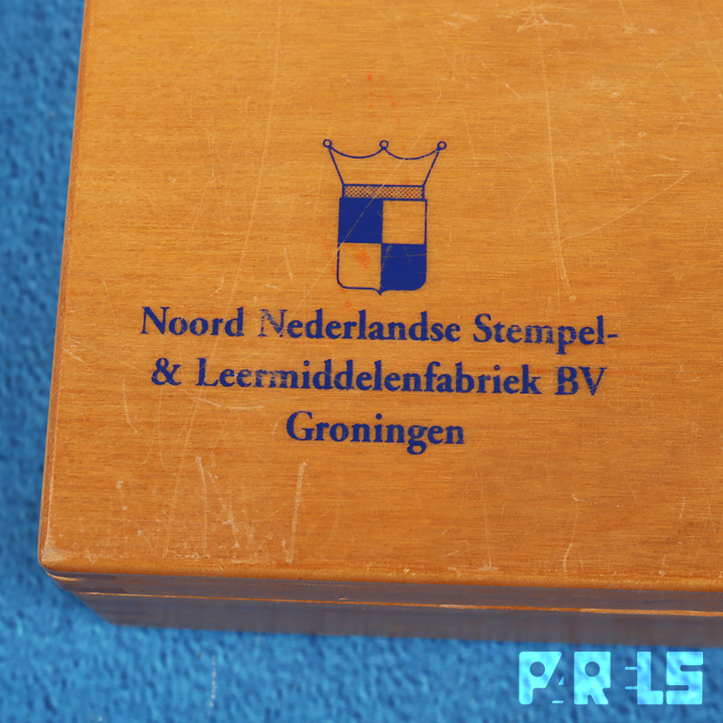 Linkprint letterstempels, kist 4B, uitgegeven door de Noord Nederlandse Stempel- & Leermiddelenfabriek NV Groningen.