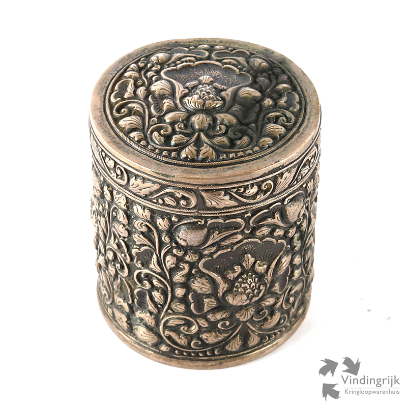 Deze theebus heeft geen merkteken, derhalve het standaardgehalte van 800/1000 zilver bij een gewicht van 150 gram.