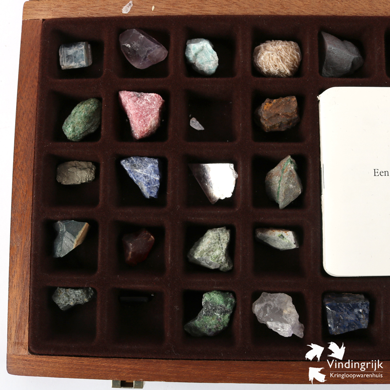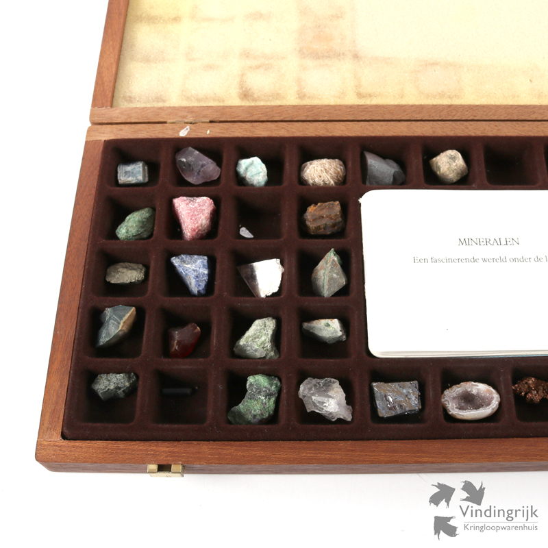 Naast de collectie zelf zitten er ook boekjes en kaarten bij met meer informatie over de diverse mineralen.