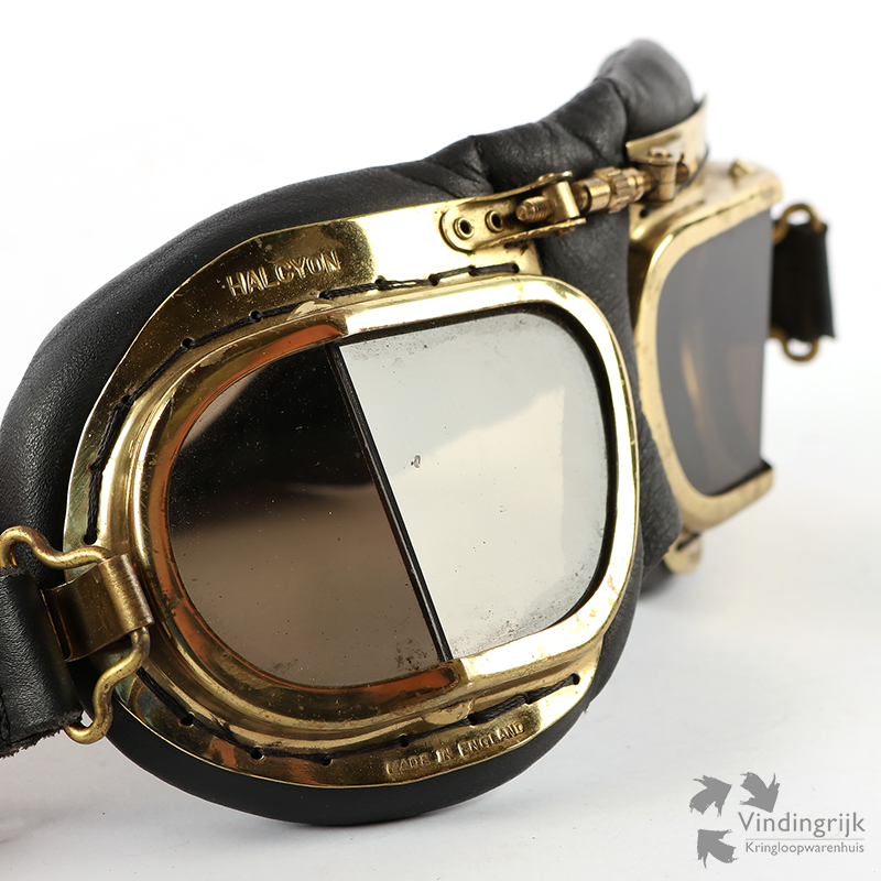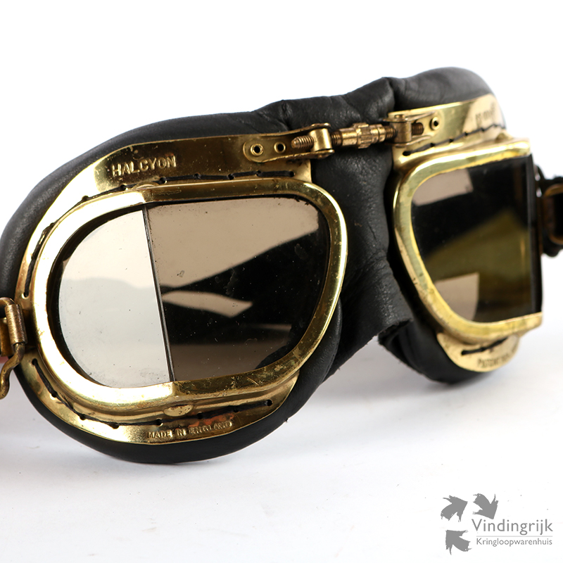 Vintage motorbril van het kwaliteitsmerk Halcyon uit Engeland.