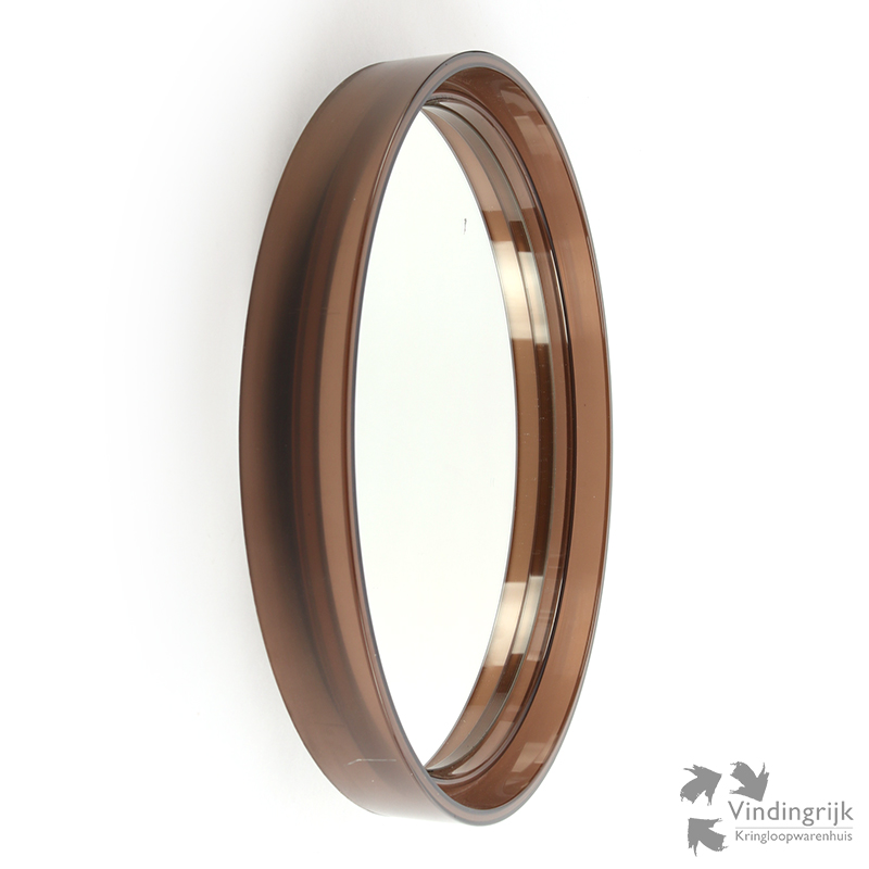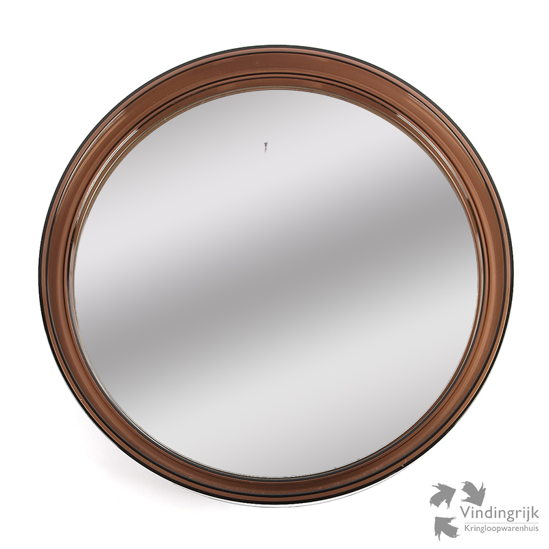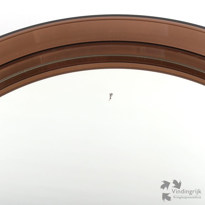 Het betreft hier een ronde spiegel uit de jaren 60/70, gemaakt in Frankrijk.