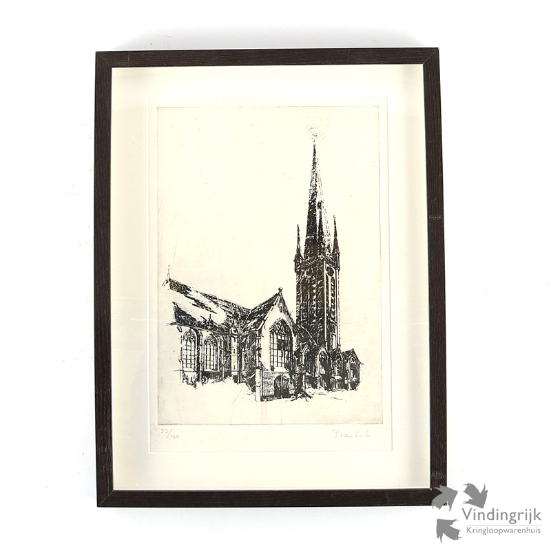 Hier een ets van deze kerk in zwart-wit. De ets is gemaakt door P. van Lith in een oplage van 100 stuks; dit is nummer 22. De grafiek zit in een nette lijst met passe-partout achter glas en is door de kunstenaar met potlood genummerd en gesigneerd.