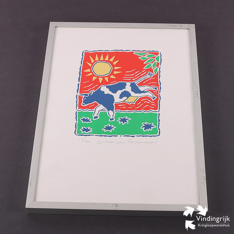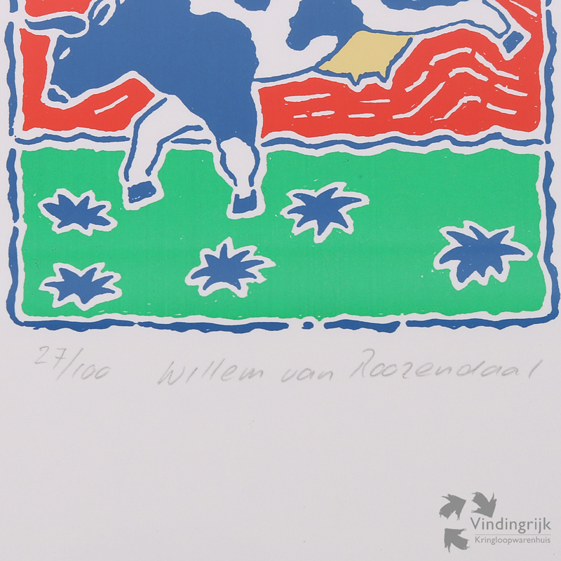 De zeefdruk is door de kunstenaar met potlood genummerd 27 van 100 en gesigneerd.