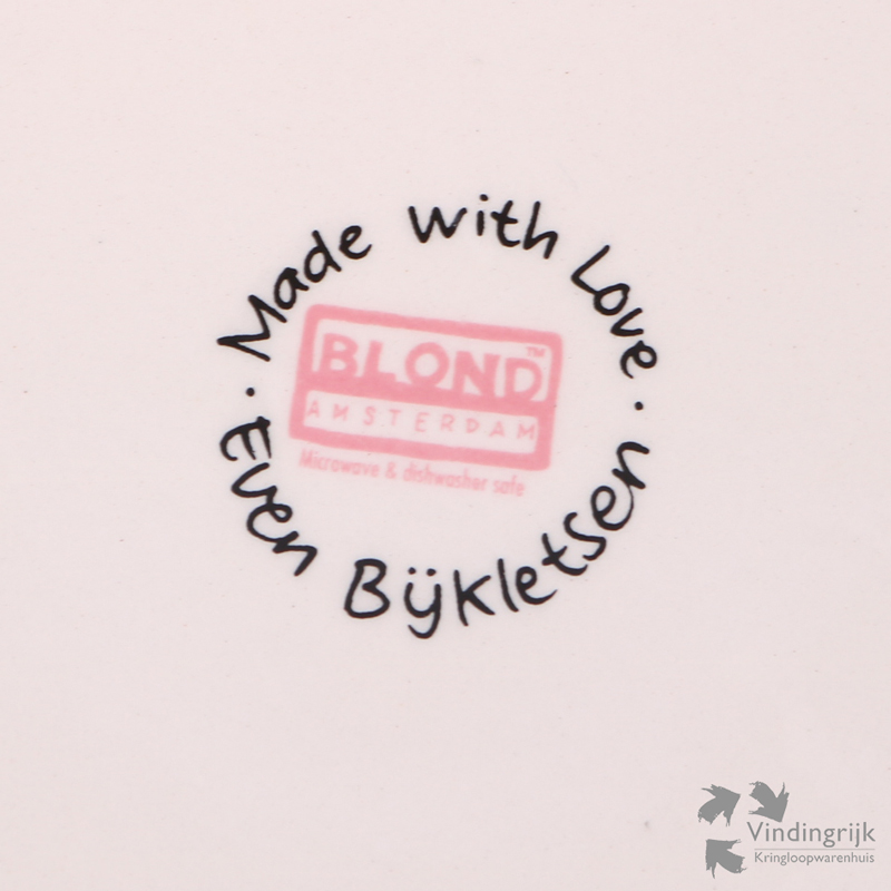 Blond Amsterdam beschildert voornamelijk persoonlijke theepotten, mokken en schilderijen. Hun gedeelde passie voor vrolijk en kleurrijk servies groeide uit tot een bont en gevarieerd assortiment. Het doel is om mensen met hun producten vrolijk en blij te maken. Dit is duidelijk te zien aan het handschrift van Blond wat je herkent aan de grappige en kleurrijke illustraties met een knipoog.