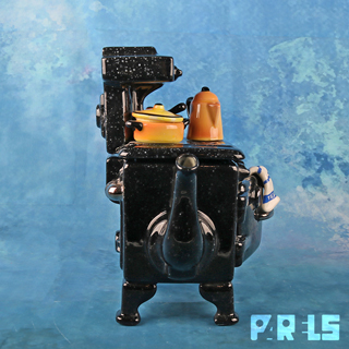Breng een vleugje Britse nostalgie in huis met deze bijzondere Paul Cardew “Old-Fashioned Stove” theepot, uitgevoerd als klassiek gietijzeren fornuis met handgemaakte details zoals een theedoek, pannetje en ketel. Dit exemplaar is volledig in Engeland vervaardigd, voorzien van het originele gouden Cardew Design Pottery stempel (1993) en bovendien met de hand gesigneerd door Paul Cardew zelf.