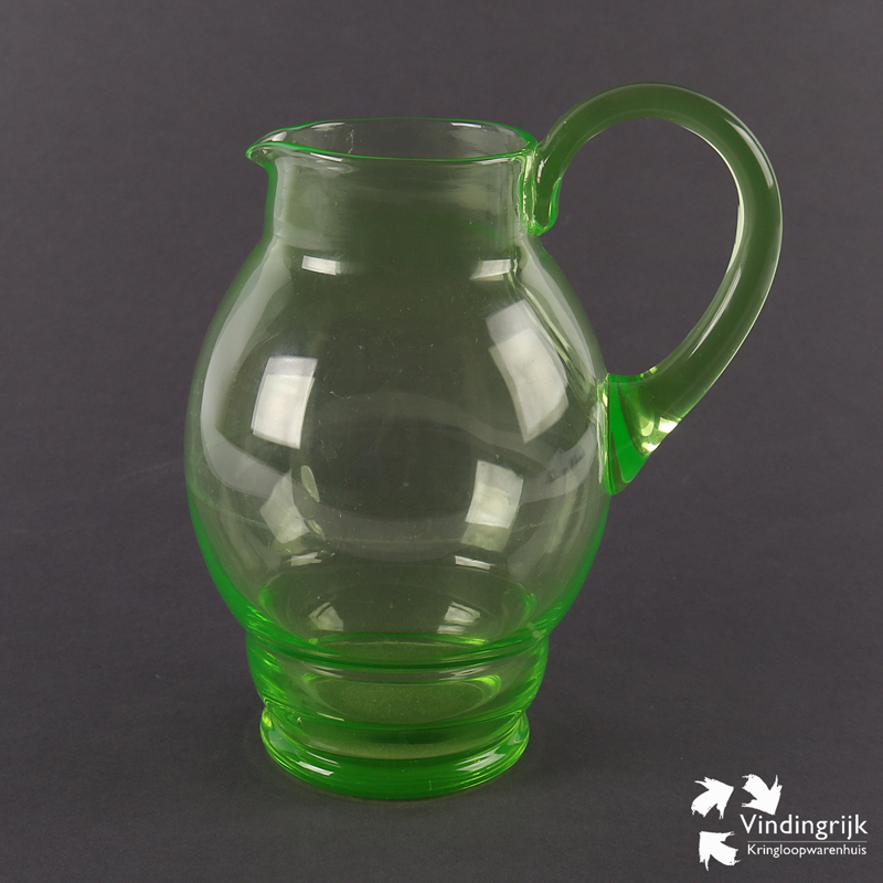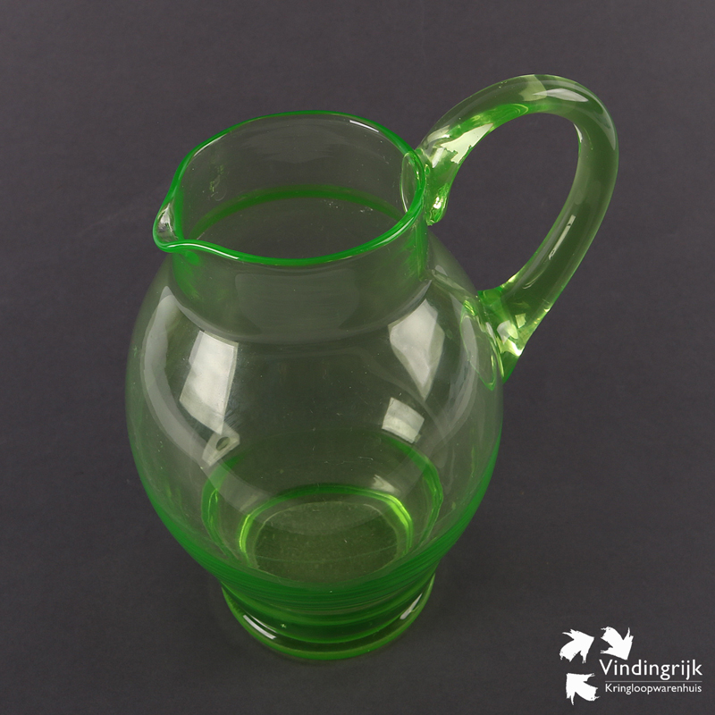 Mooie oude kan van uraniumglas. Voor zijn leeftijd in zeer goede staat.