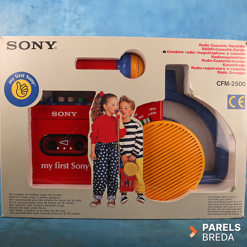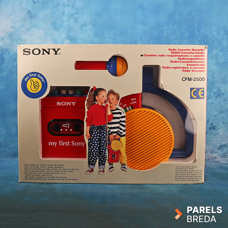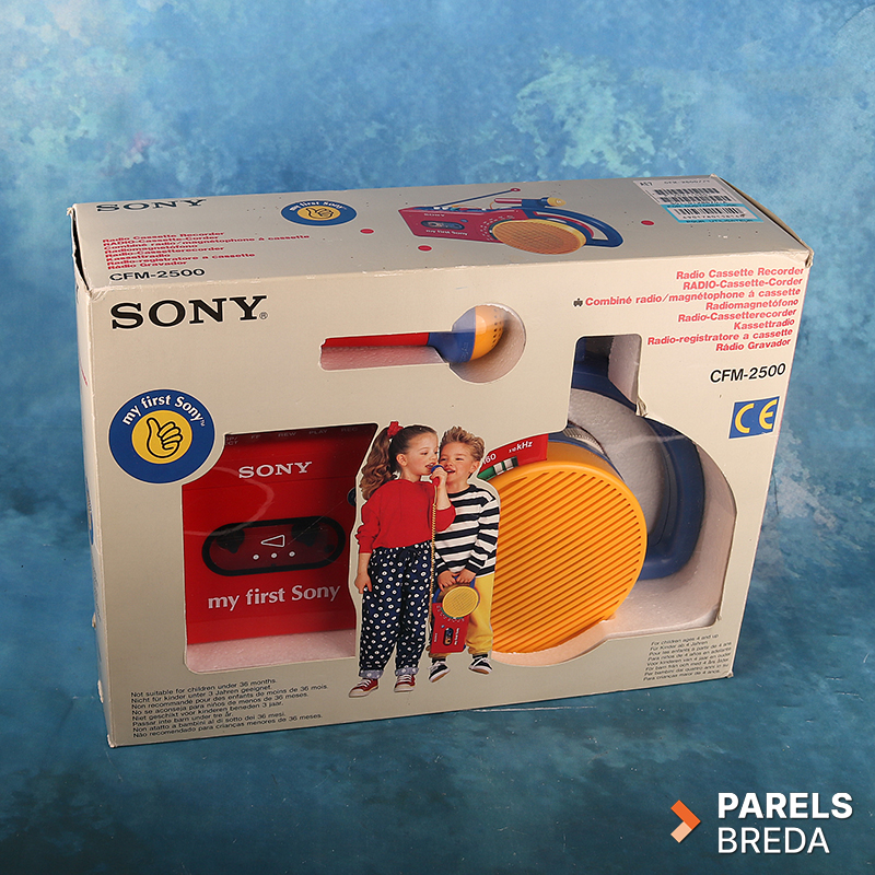 Nog nieuw en ongebruikt in de originele verpakking: De Sony My First Sony CFM‑2500 Radio Cassetterecorder is een iconisch model uit de jaren tachtig, uitgevoerd in stevig kunststof met de karakteristieke primaire kleuren die het herkenbare en speelse ontwerp bepalen. Het apparaat biedt zowel radio‑ontvangst als cassettefunctionaliteit en staat bekend om de eenvoudige bediening die destijds speciaal was afgestemd op jonge gebruikers. De microfoonaansluiting en geïntegreerde draagbeugel maken het ontwerp compleet en benadrukken het praktische karakter van dit compacte audiosysteem.