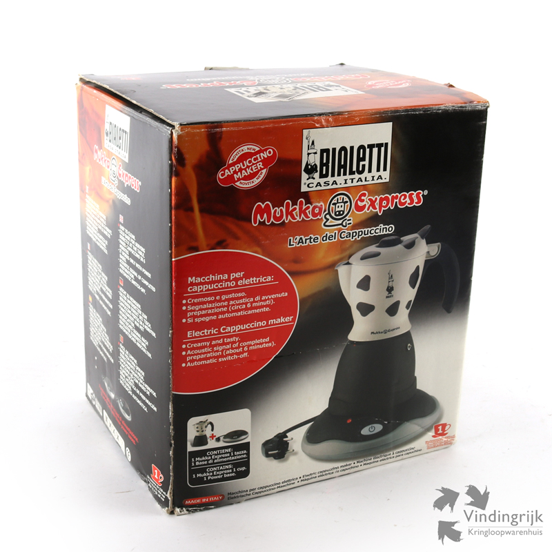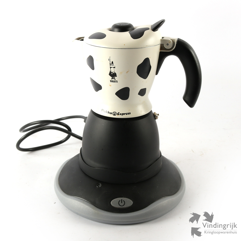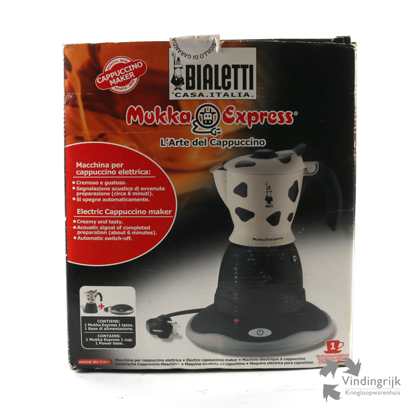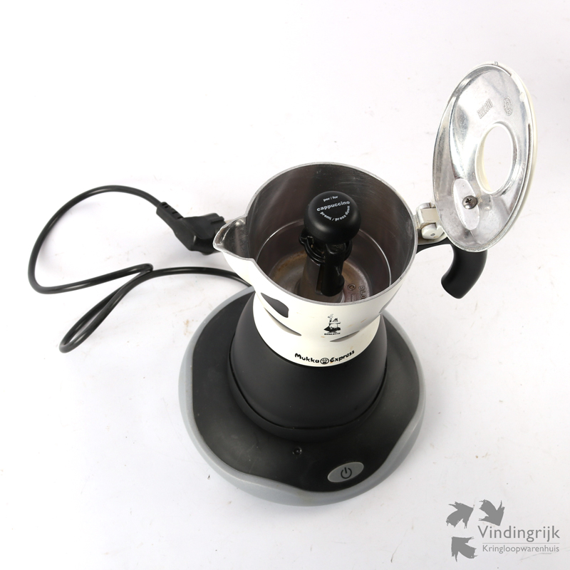 Een bijzonder koffiepotje is deze Bialetti Mukka Express uit Italië. Met deze elektrische cappuccinomaker bereidt je de koffie en melk voor een cappuccino of koffie verkeerd tegelijkertijd.