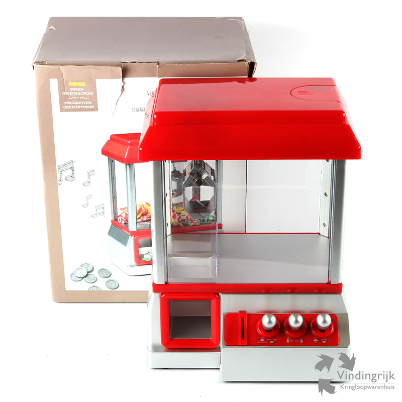 Je kent de grijpmachine vast wel van de kermis. Het principe van de mini snoepgrijpmachine is hetzelfde: de pret begint zodra je een muntje (meegeleverd) in het apparaat hebt gestopt en de muziek begint te spelen. Vanaf dat moment heb je 75 seconden om met de 3 joysticks naar jouw favoriete snoepje te navigeren en ‘m te grijpen. De machine is gemaakt van kunststof en werkt op batterijen, die worden meegeleverd.