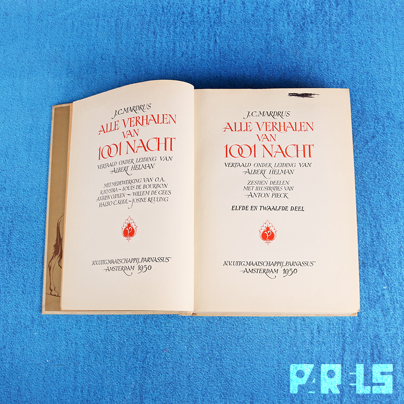 Deel 11 & 12 van ‘Alle verhalen van 1001 nacht’ verzameld in een hardcover boek (a4 formaat). Schrijver J.C.Marcus, vertaald onder leiding van Albert Helman en uitgegeven (in 1950) door uitgeverij Parnassus uit Amsterdam.